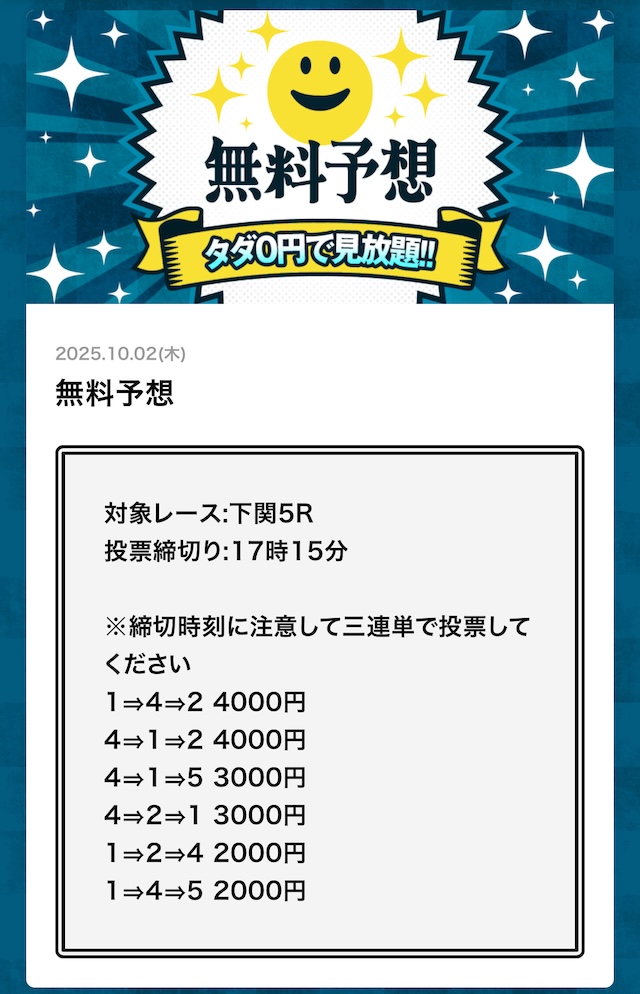 これから競艇で収益を上げたいと考えている方は、まずは幸せボートレースの無料予想から試してみてください。