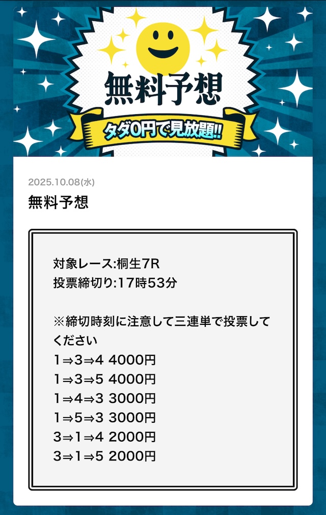 有料予想は情報にお金を払う対価として、大きく稼げる情報を提供してくれます。