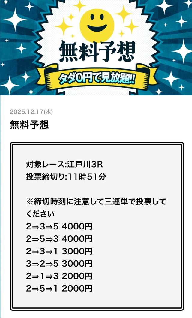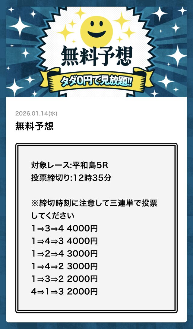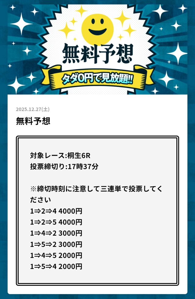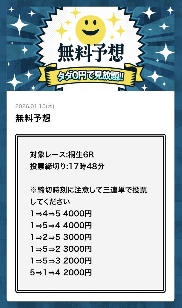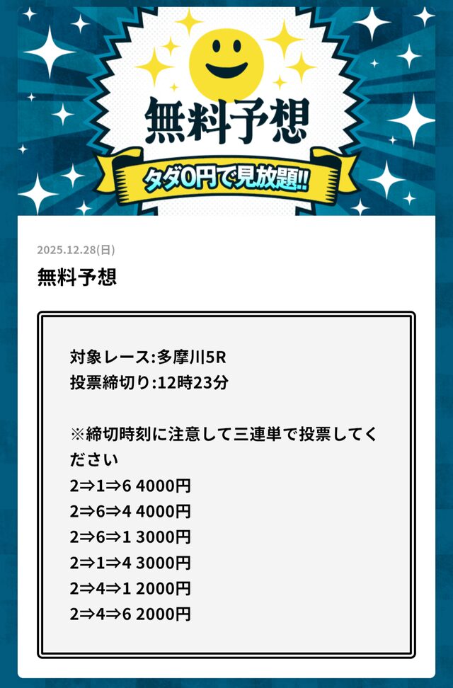 無料予想とは思えない金額です。