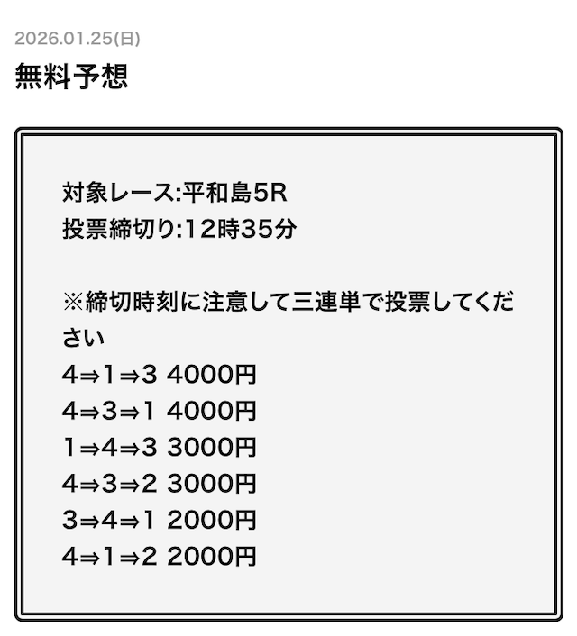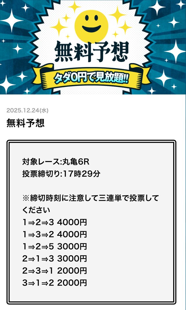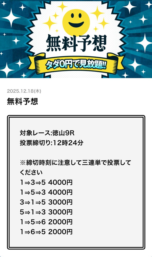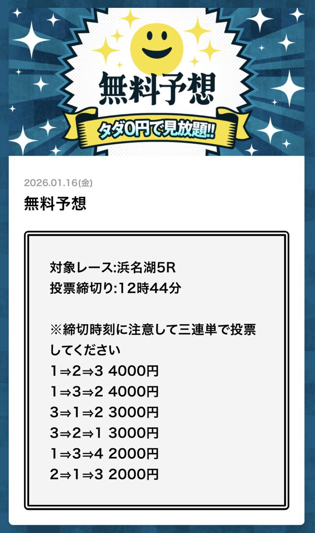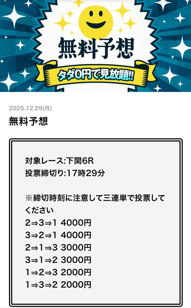 無料予想とは思えない金額です。
