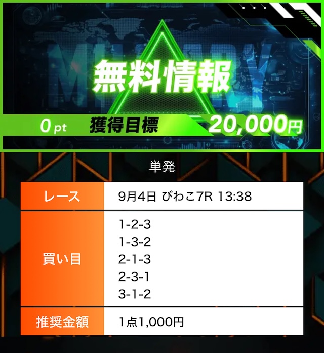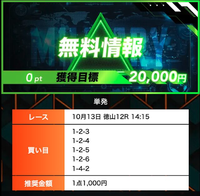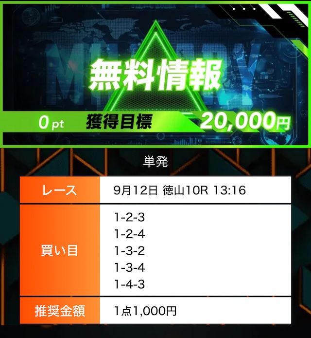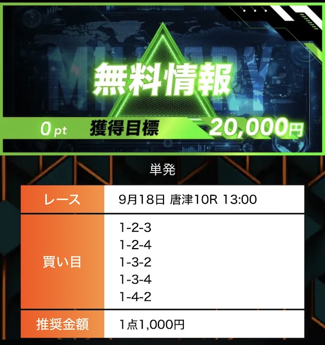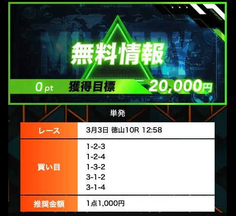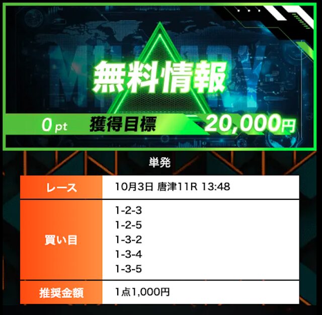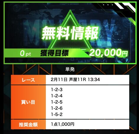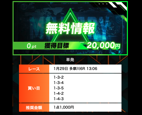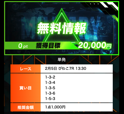 無料予想だけでも安定して資金を増やせる一方、有料予想では回収率10048%・的中率100%という驚異的な成績を記録。