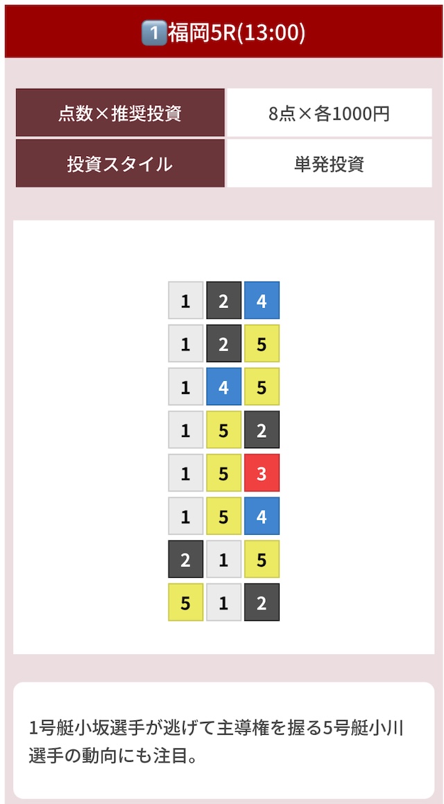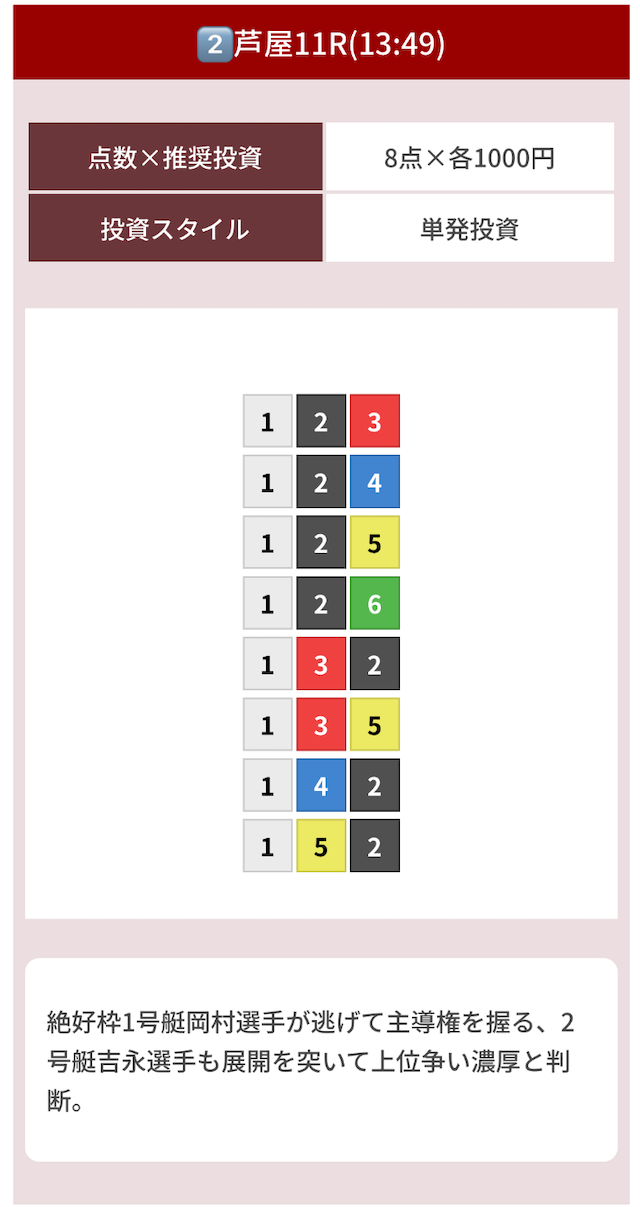 予想が公開されるのは周回展示の前なので、よほどのことがない限り2号艇を頭で買わないでしょう。