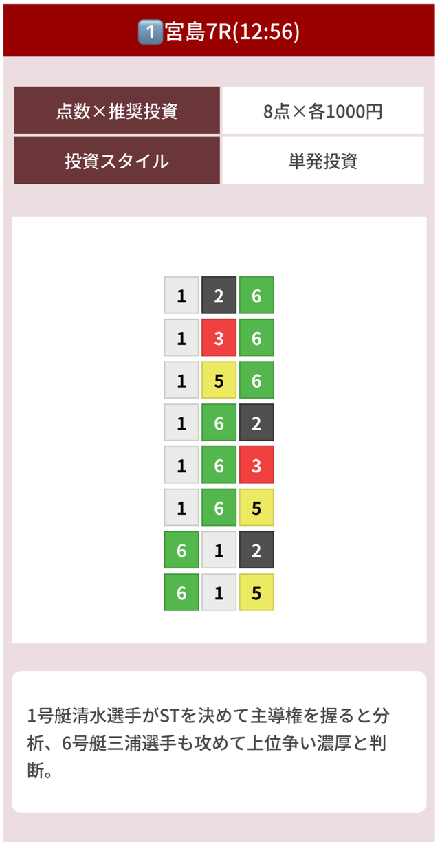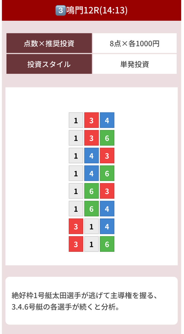 | 9月16日 | 三国12R | 三連単 | 8点 | 8,500円 |