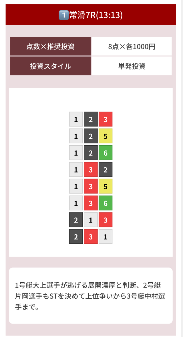 | 12月8日 | 常滑7R | 三連単 | 8点 | 10,600円 |