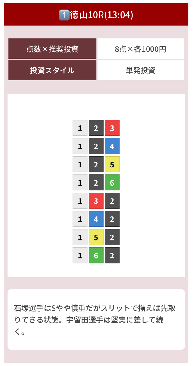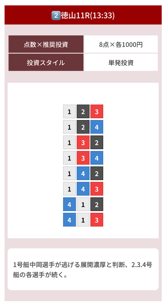 | 12月17日 | 徳山11R | 三連単 | 8点 | 10,700円 |