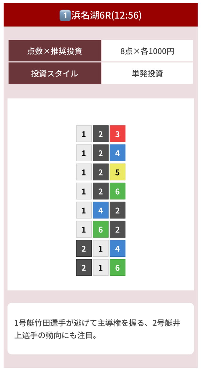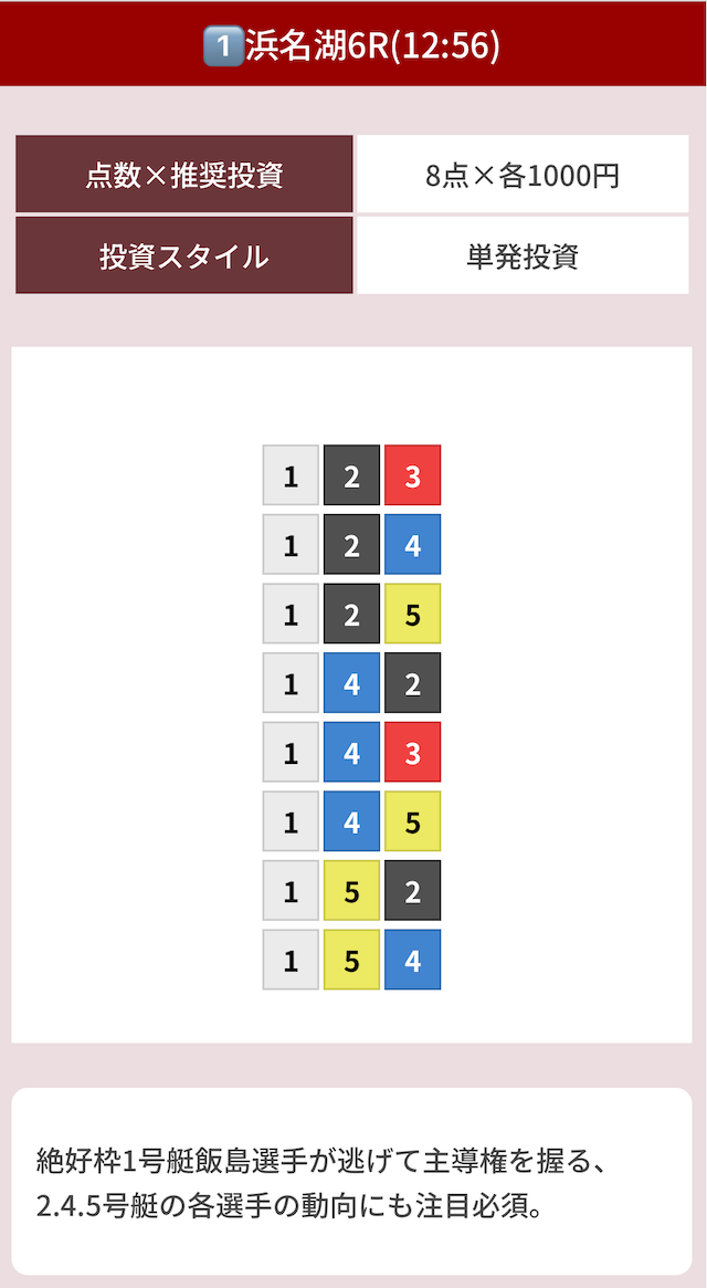 | 9月15日 | 浜名湖5R | 三連単 | 8点 | 12,500円 |