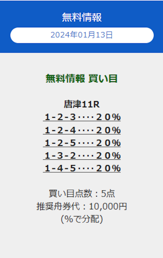 運要素が絡みやすく外れることが多い競艇において、これほど安定感のあるサイトは中々ありません。