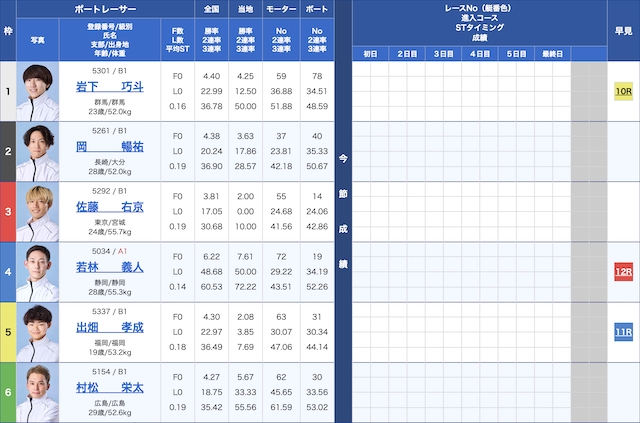 例として、鳴門競艇場における以下の1日をご覧ください。