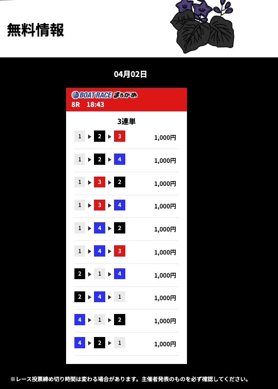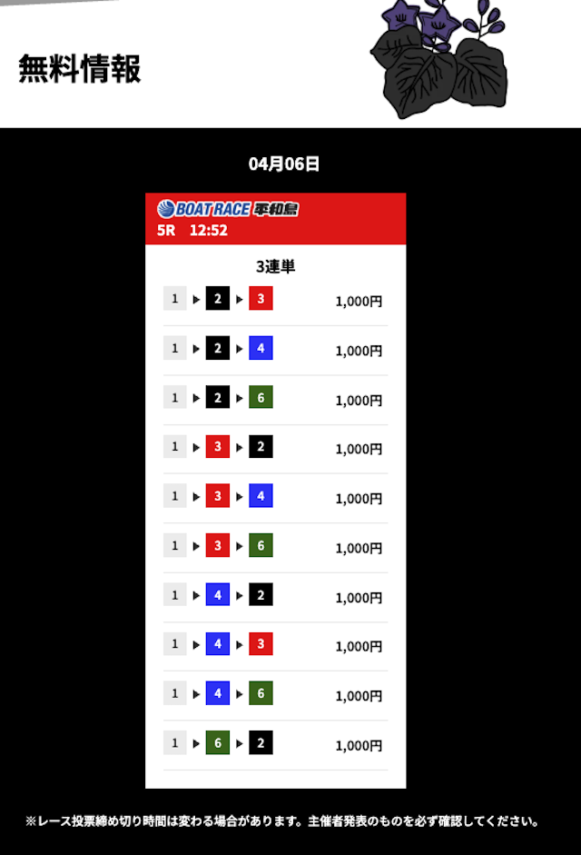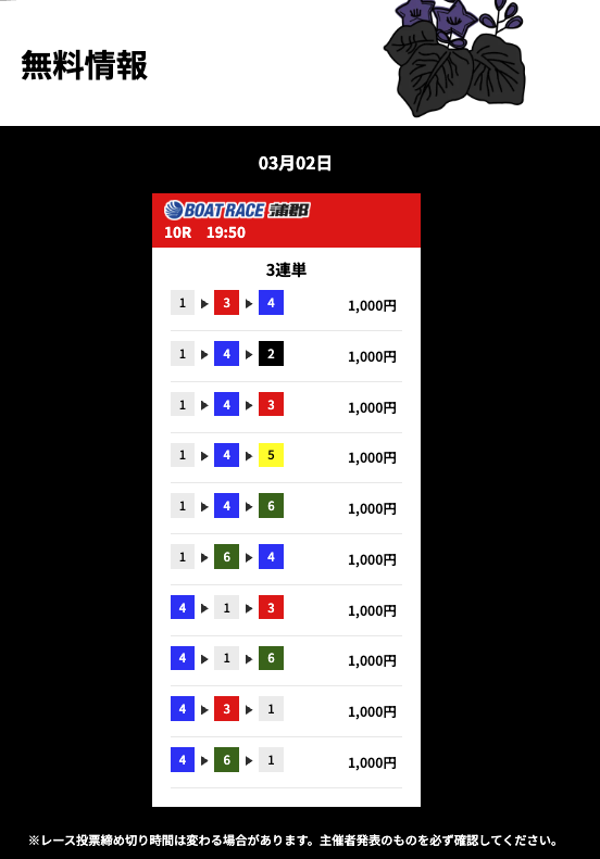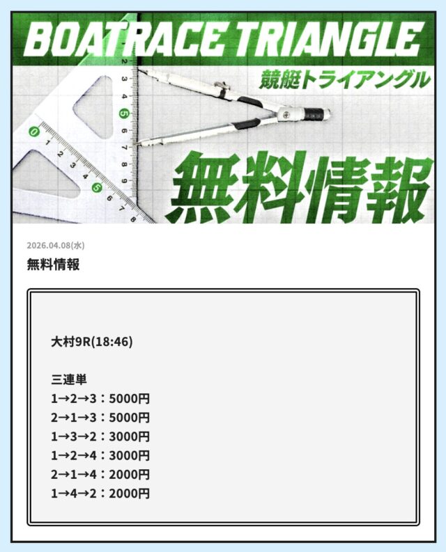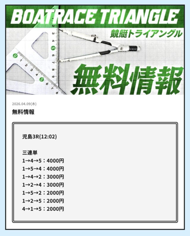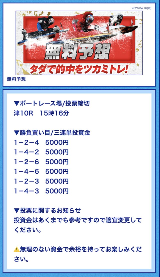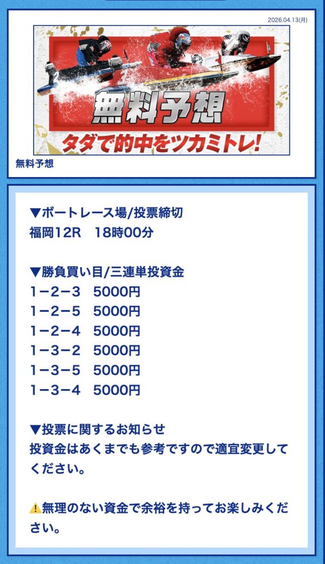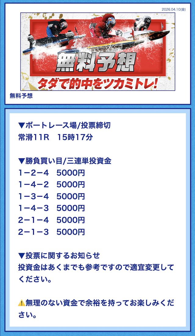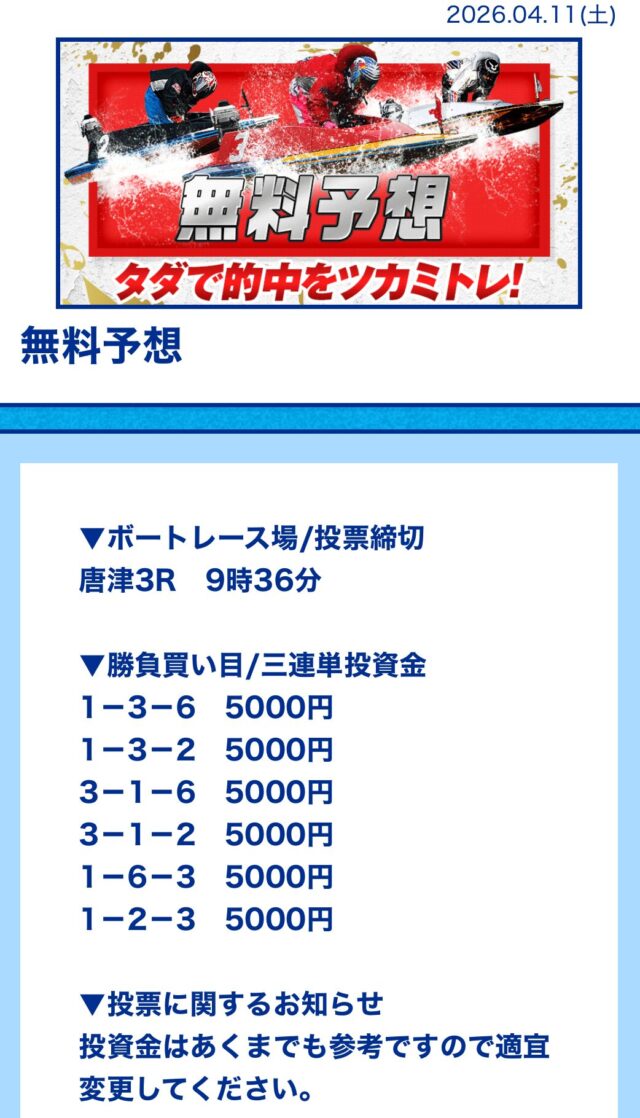 今日の無料も徳山レースで的中したと思ったら