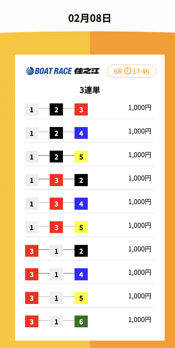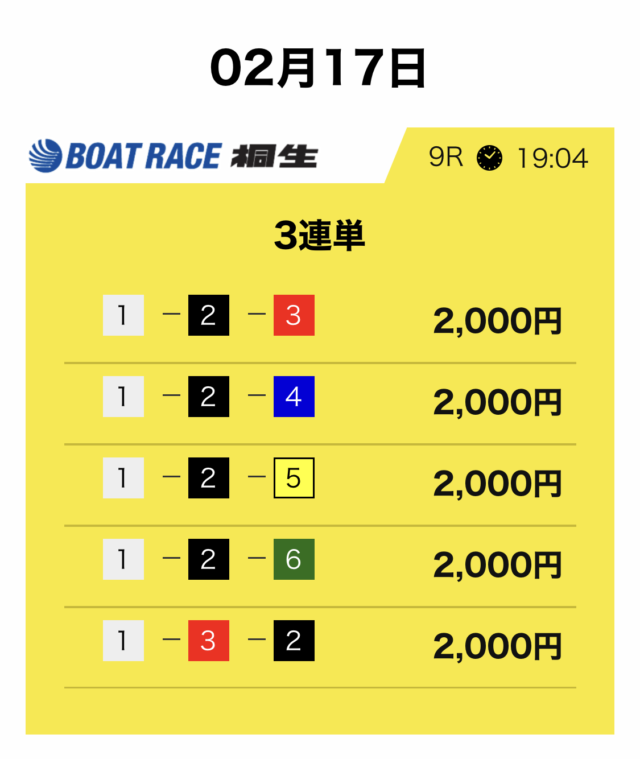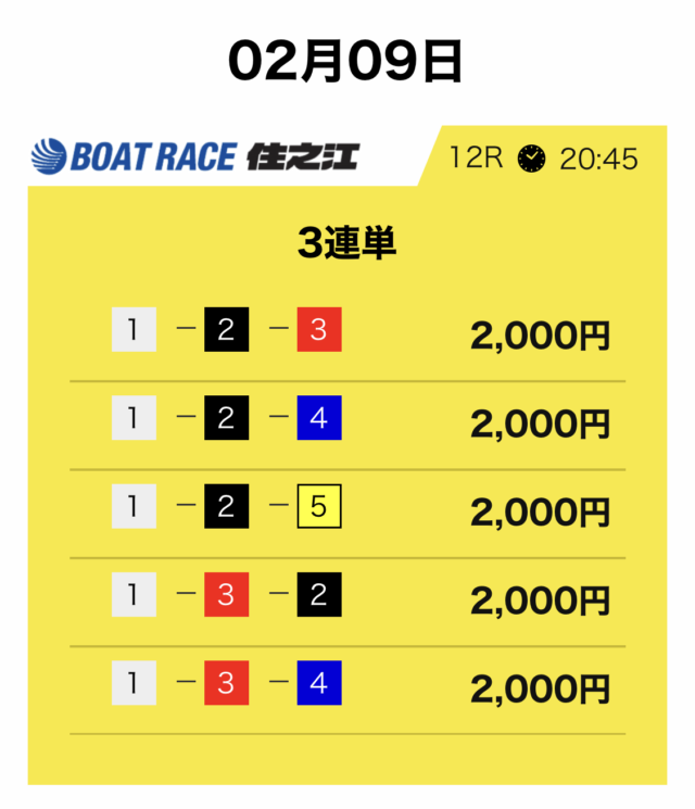 12/8 徳山競艇場 5R24,000円340,400円獲得!- 賭式3連単