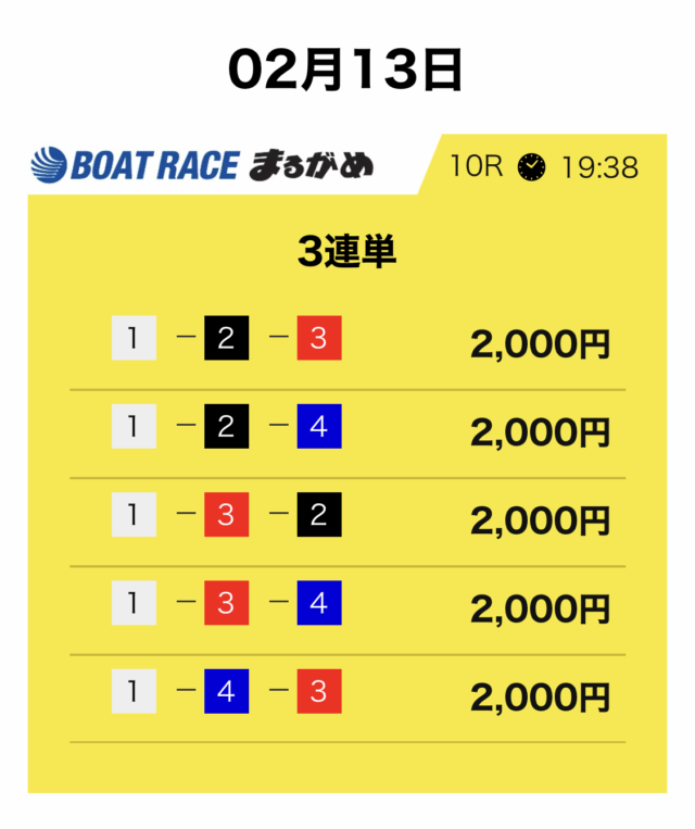 1/13 多摩川競艇場 6R20,000円94,000円獲得!- 賭式3連単