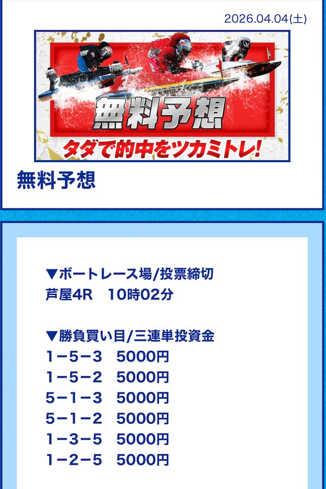 夜の無料も若松レースで4万7400円の払い戻し出たし