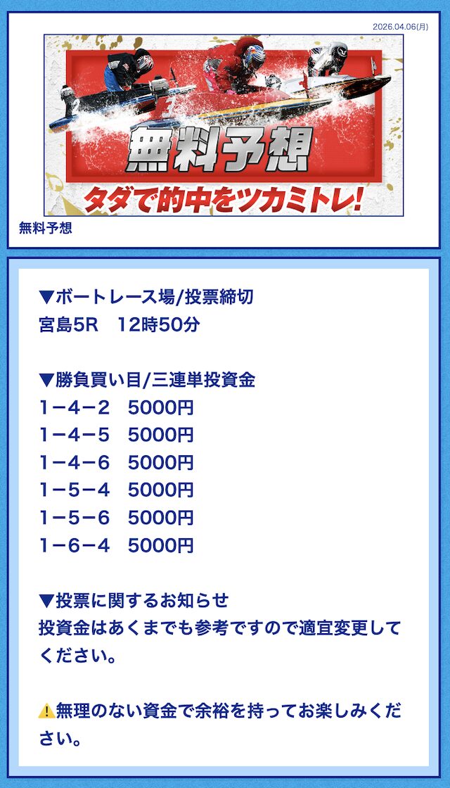 2026/03/19 宮島競艇場 6R8,000円47,900円獲得!- 賭式3連単
