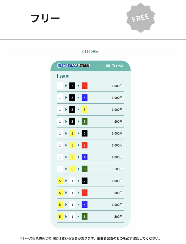 無料予想の累計成績