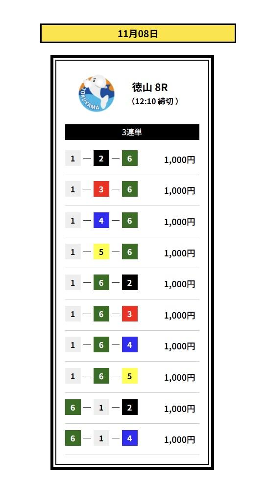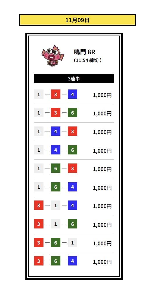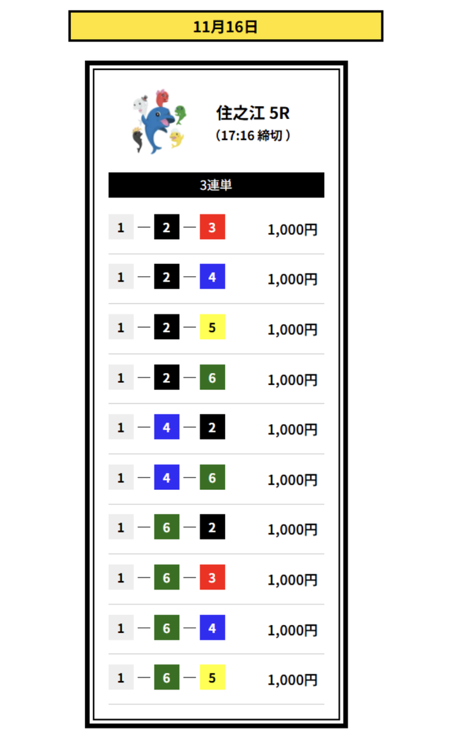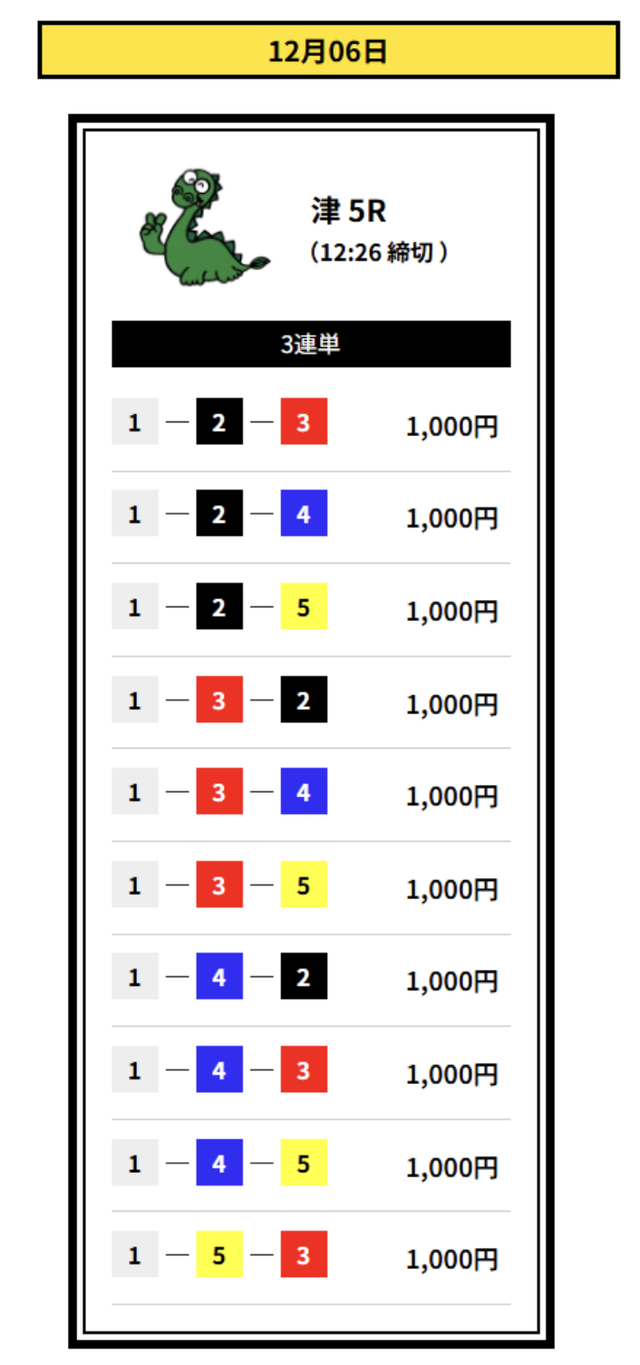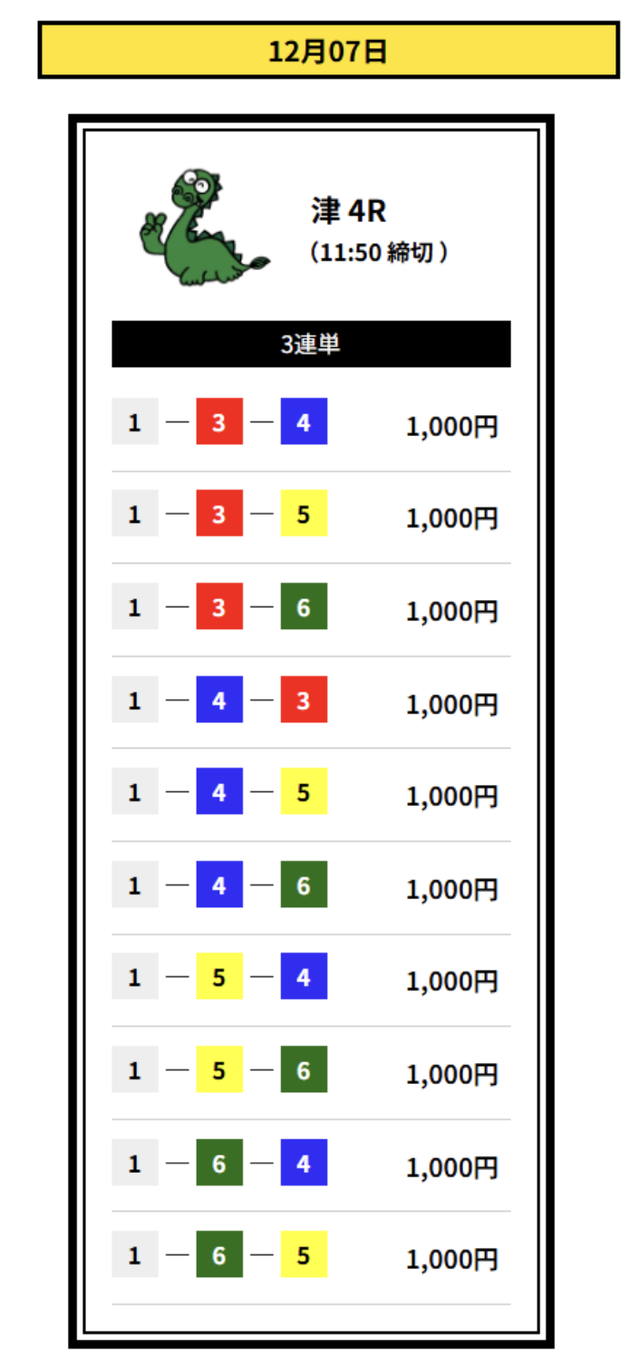 2着には2・3号艇を配置して、堅実なイン逃げパターンを想定した買い目です。