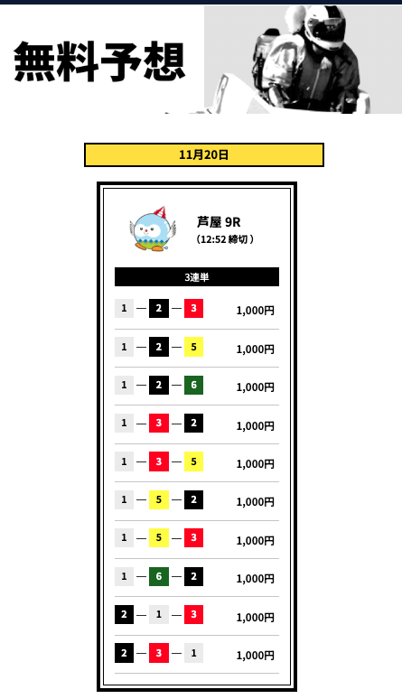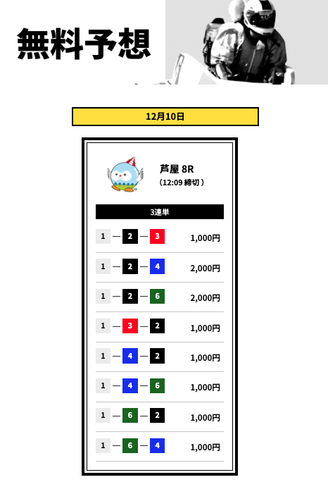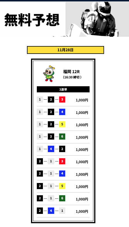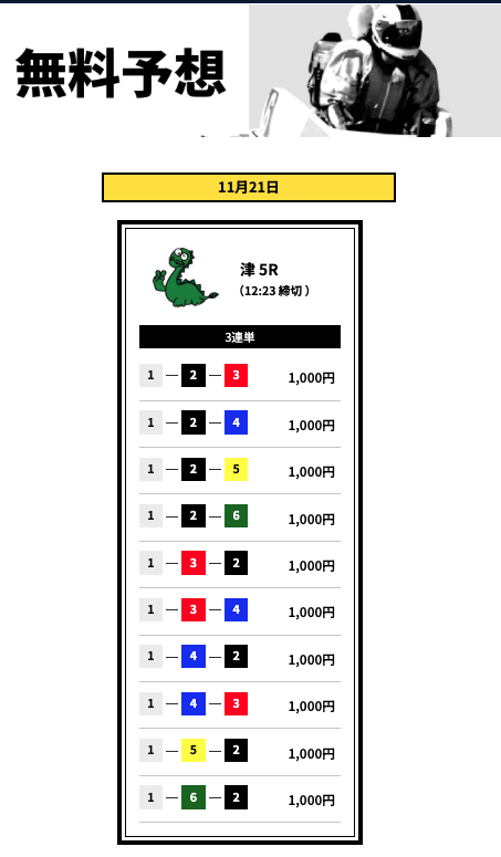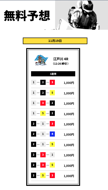 とはいえ、いきなり有料から始めるのはリスクが高いので、まずは無料予想で船客万来の実力を確かめてからでも遅くはないでしょう。