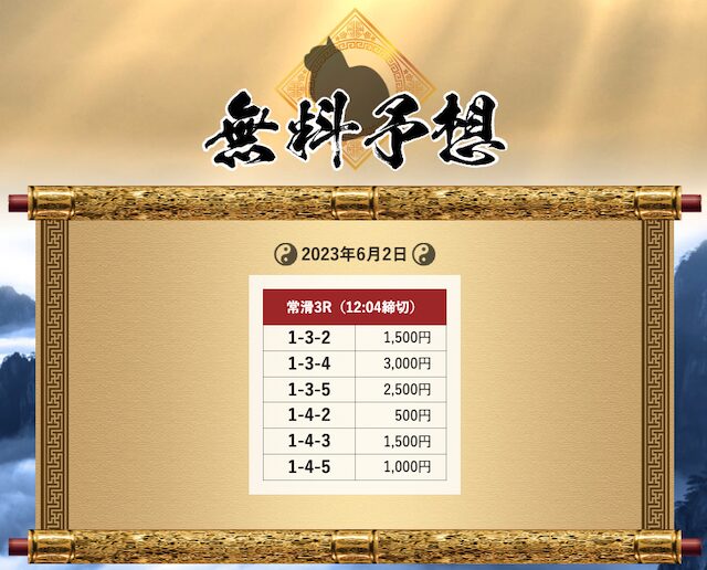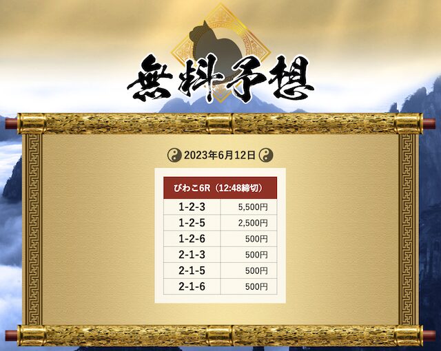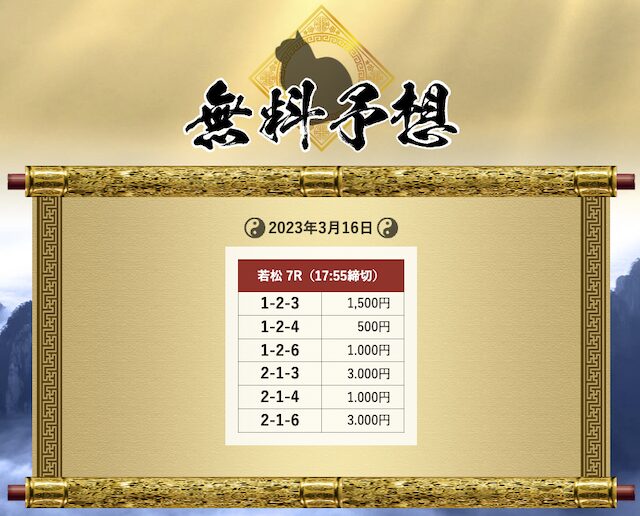 さらに「試してみないと損をする」と記載もしており、提供する予想にかなり自信があるように見受けられます。
