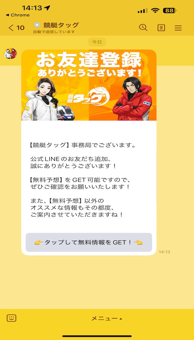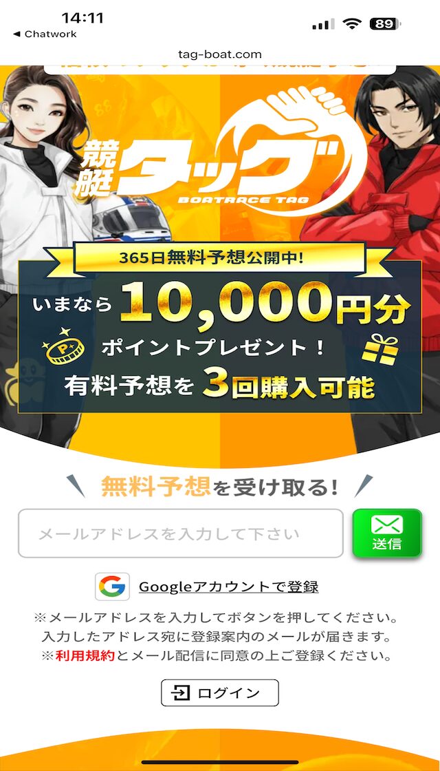 競艇タッグに登録すると、1万円分のポイントが貰えるそうです。