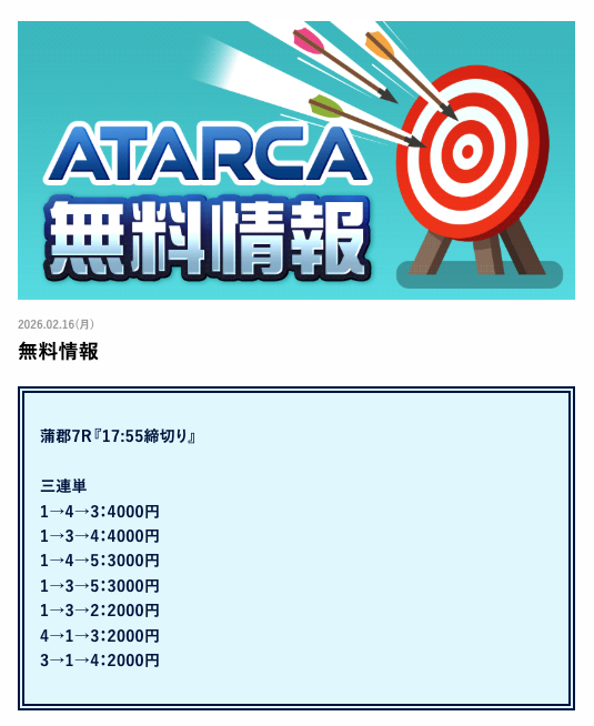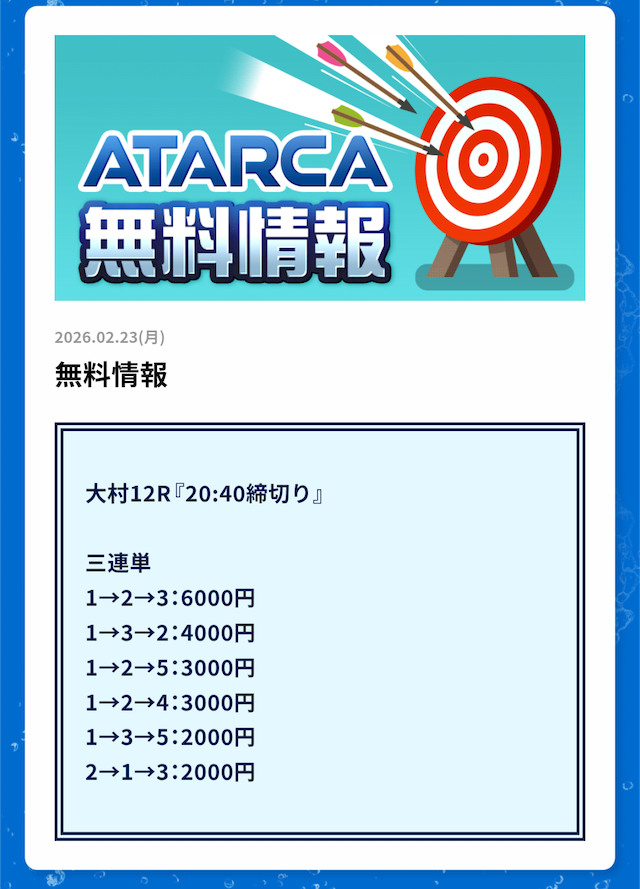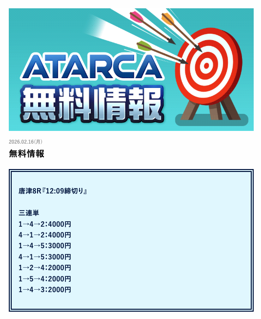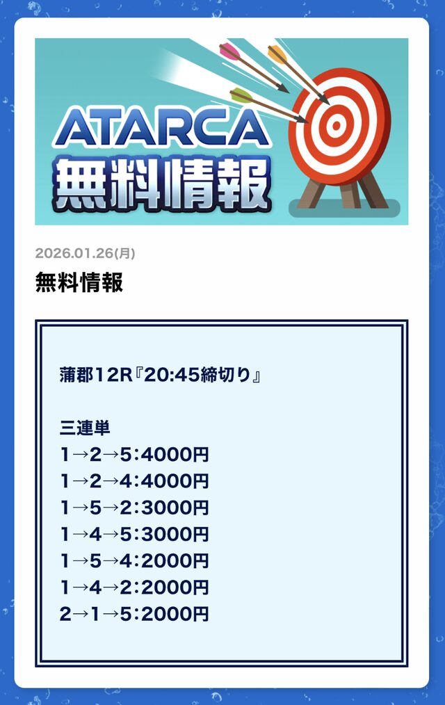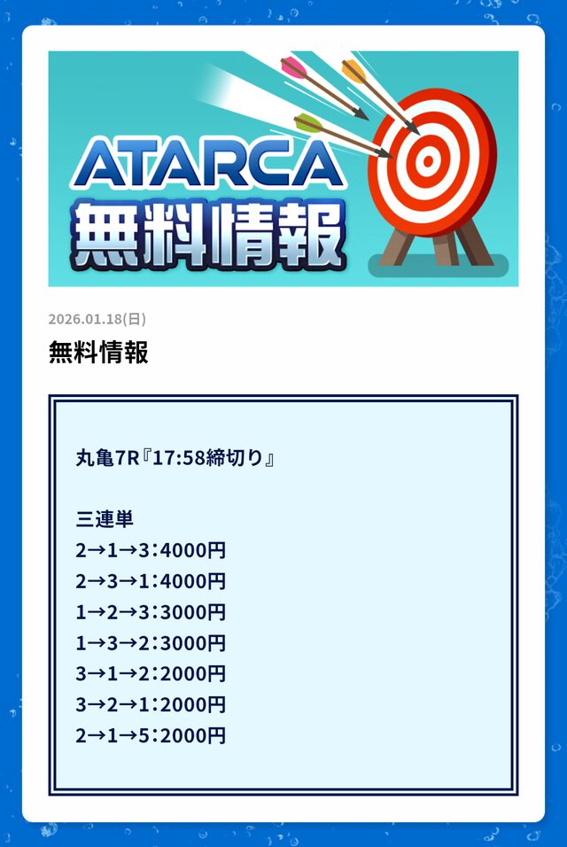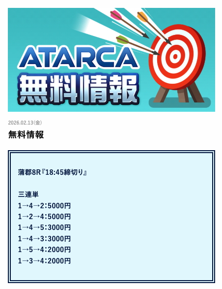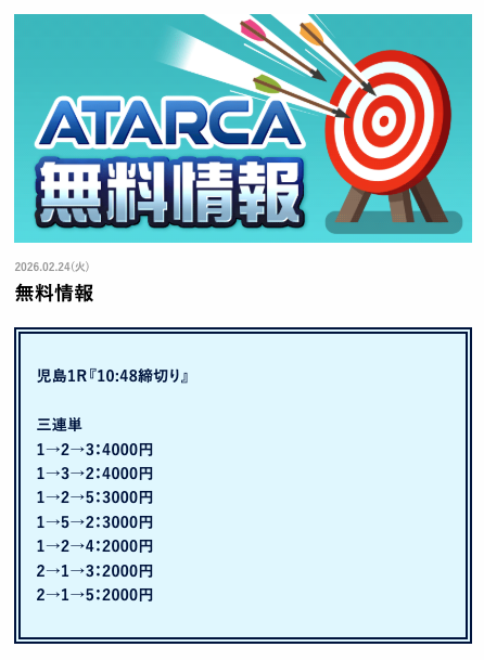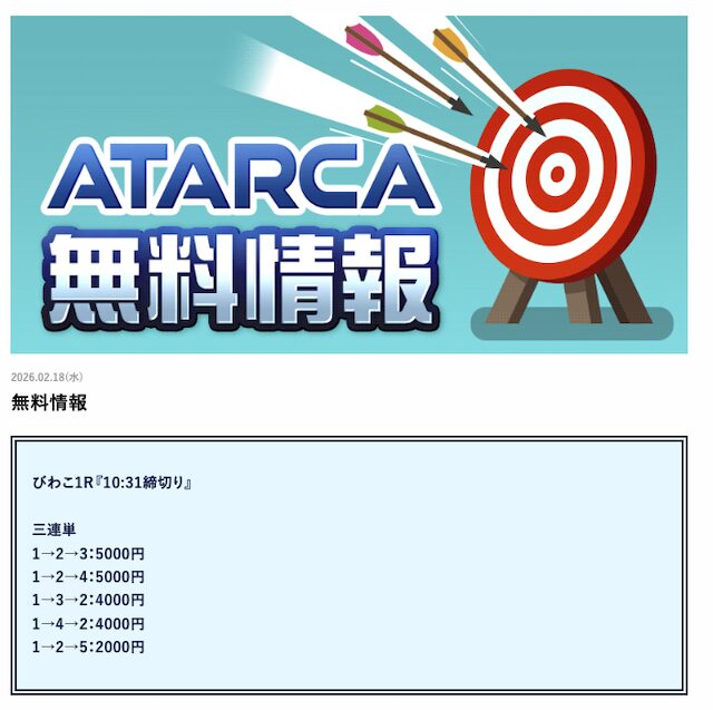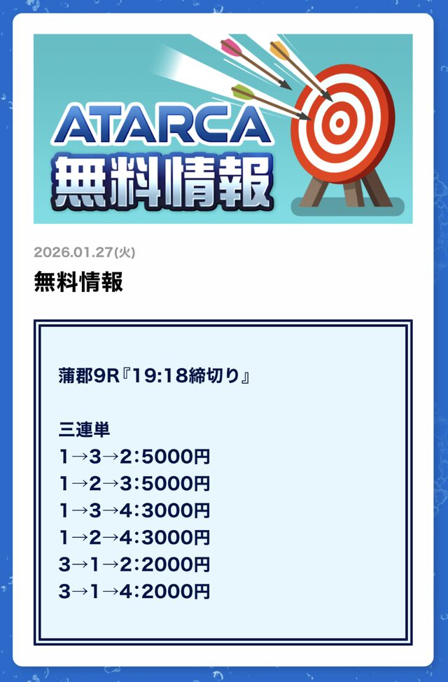 勝率の高い予想に乗り、ATARCAで勝負してみてください。