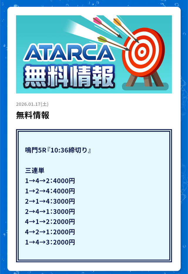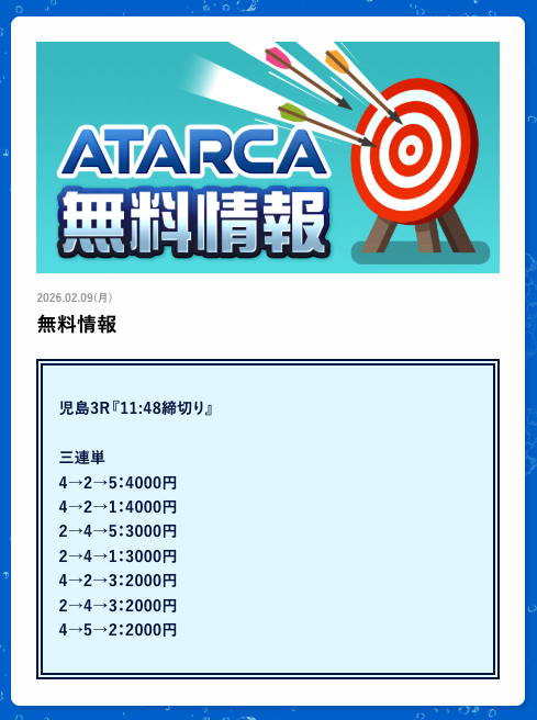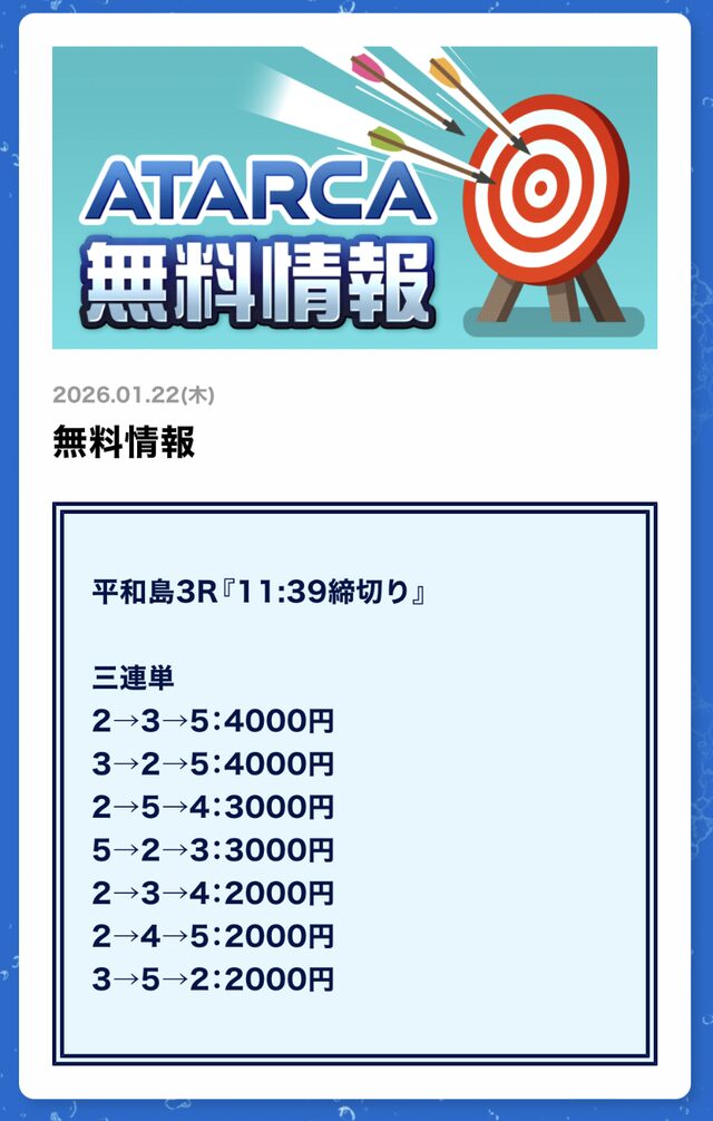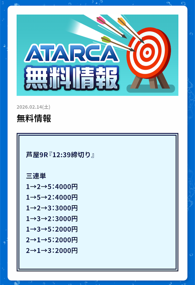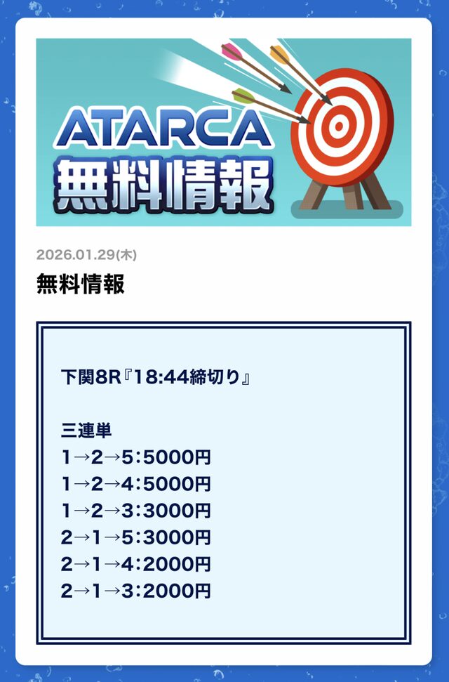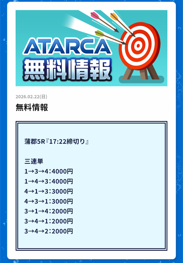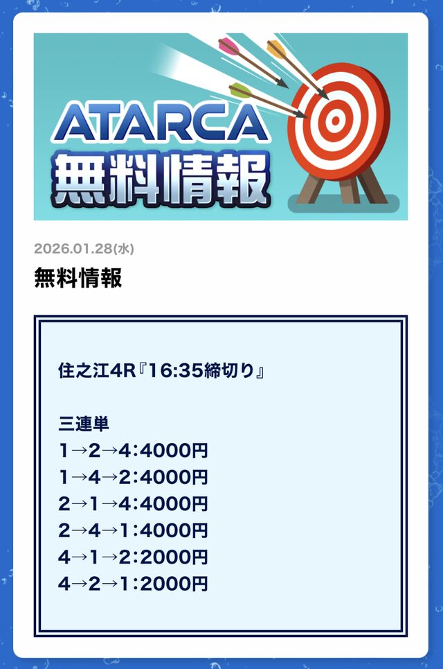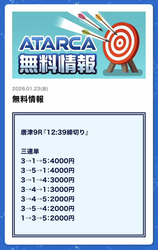 勝率の高い予想に乗り、ATARCAで勝負してみてください。