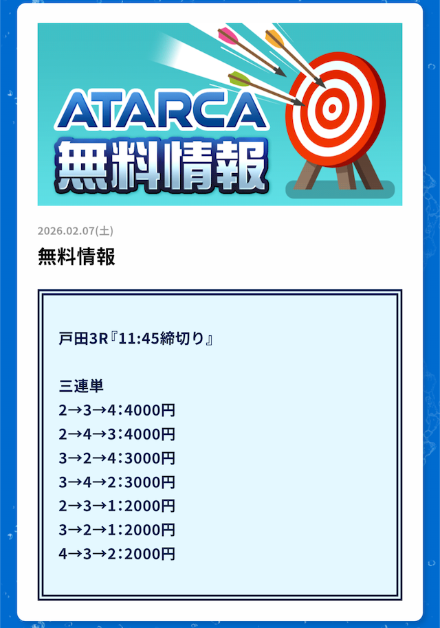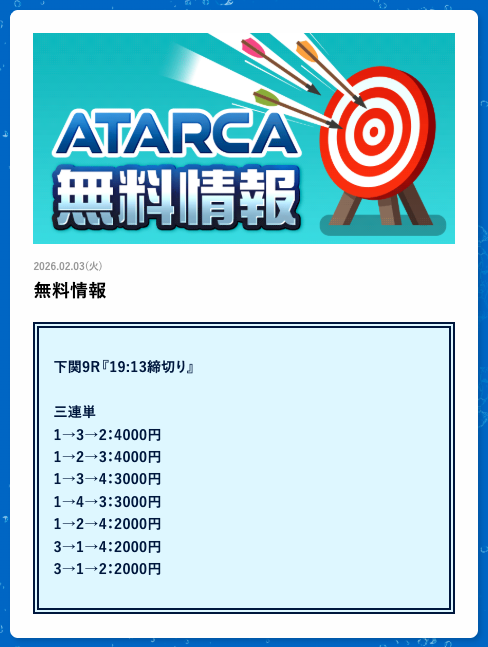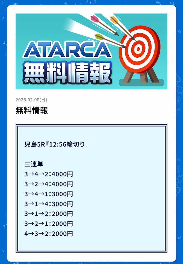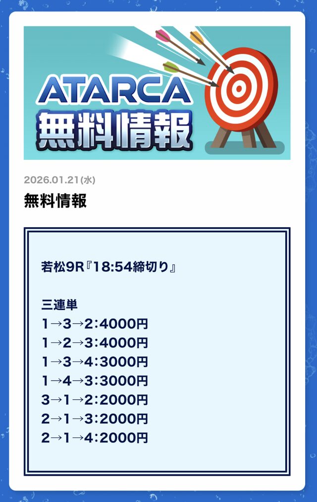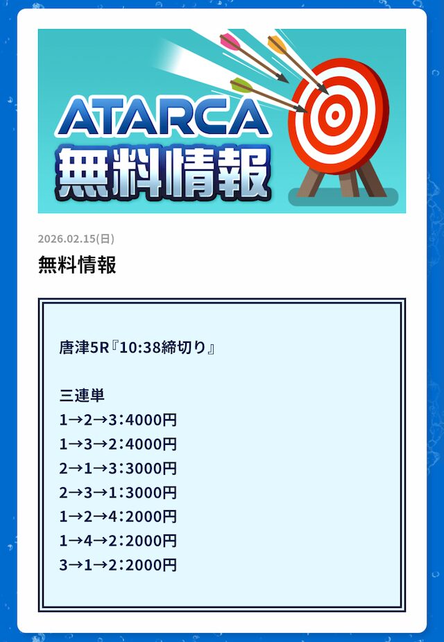 分析とは別で、ATARCAが最も稼いだ無料予想をご紹介しておきます。