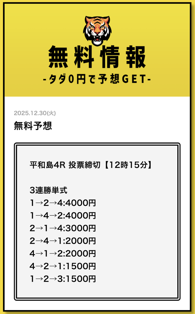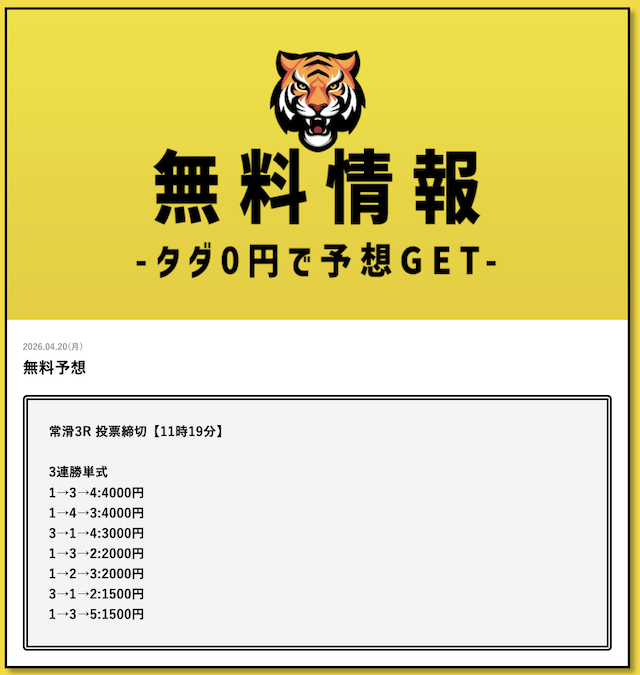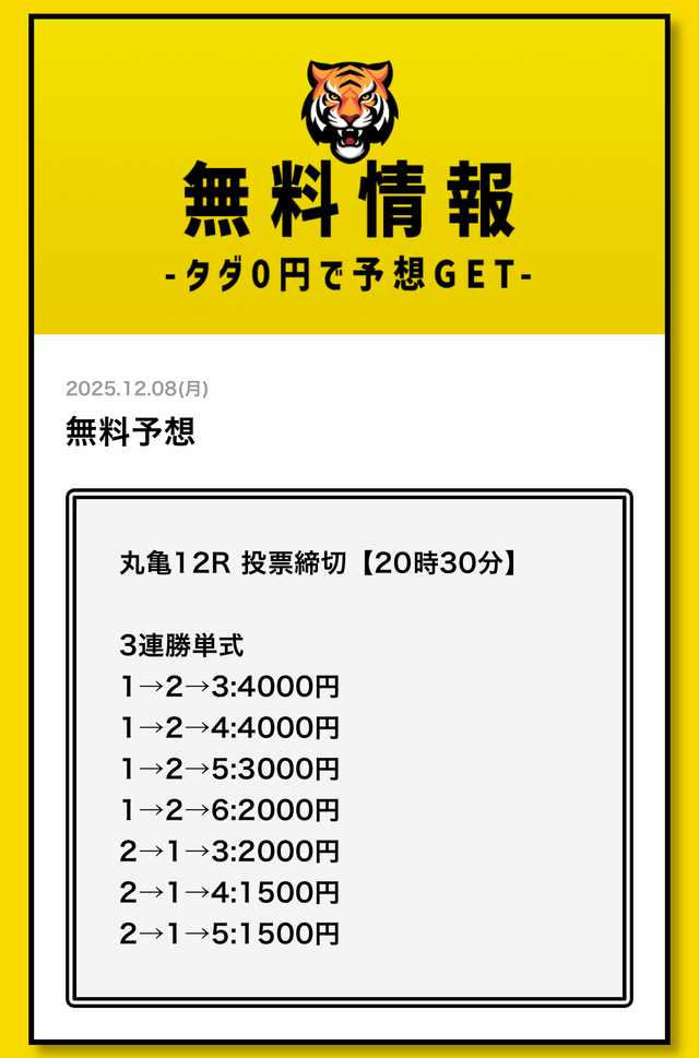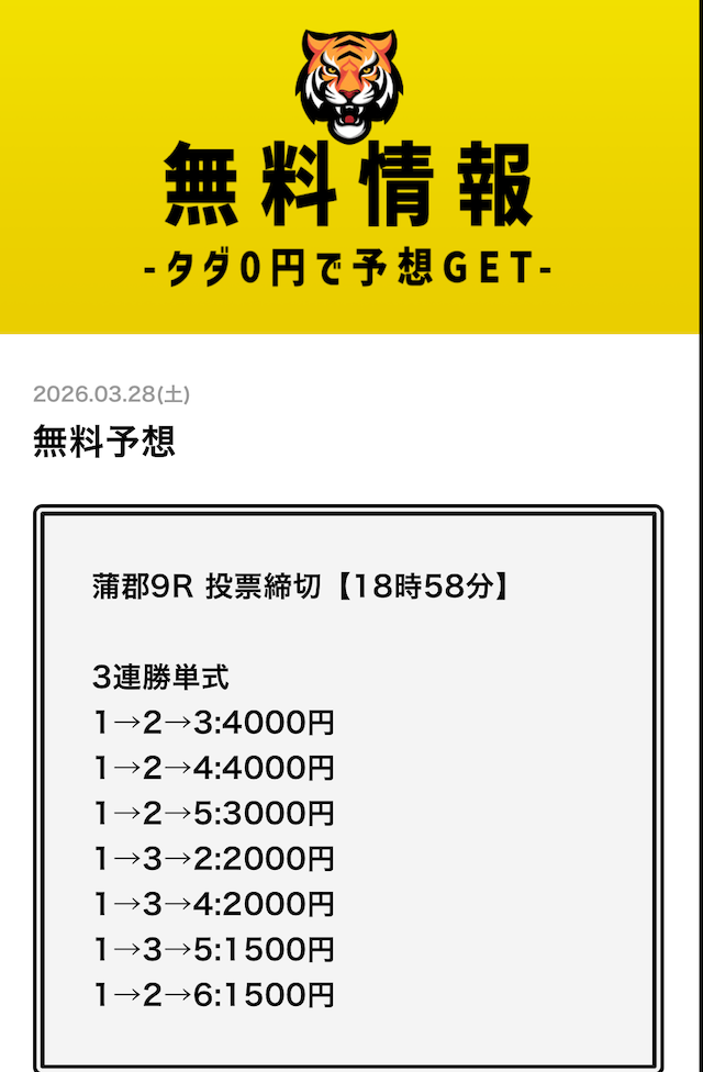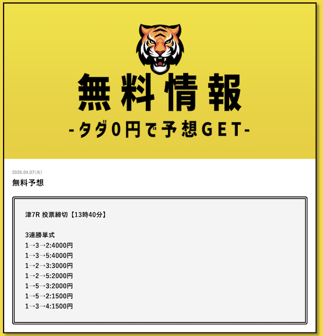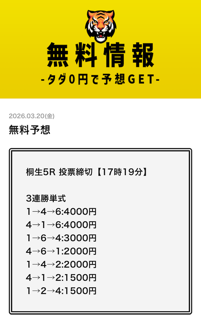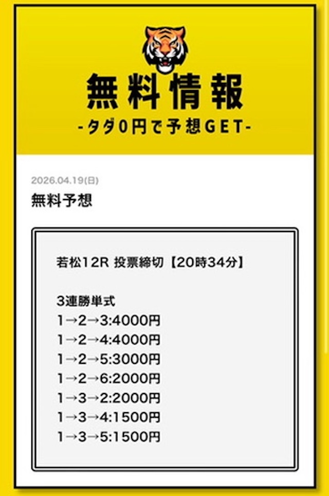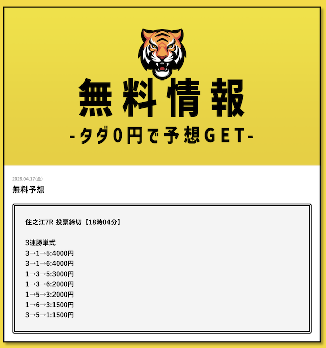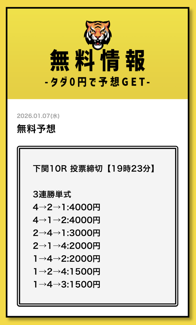 まずは無料予想でタイガーボートの分析力を確認し、その精度に納得してから有料予想に移行してみてください。