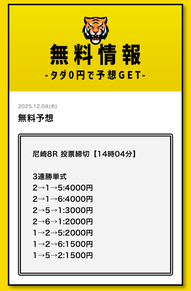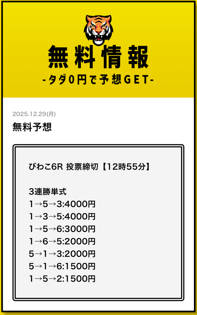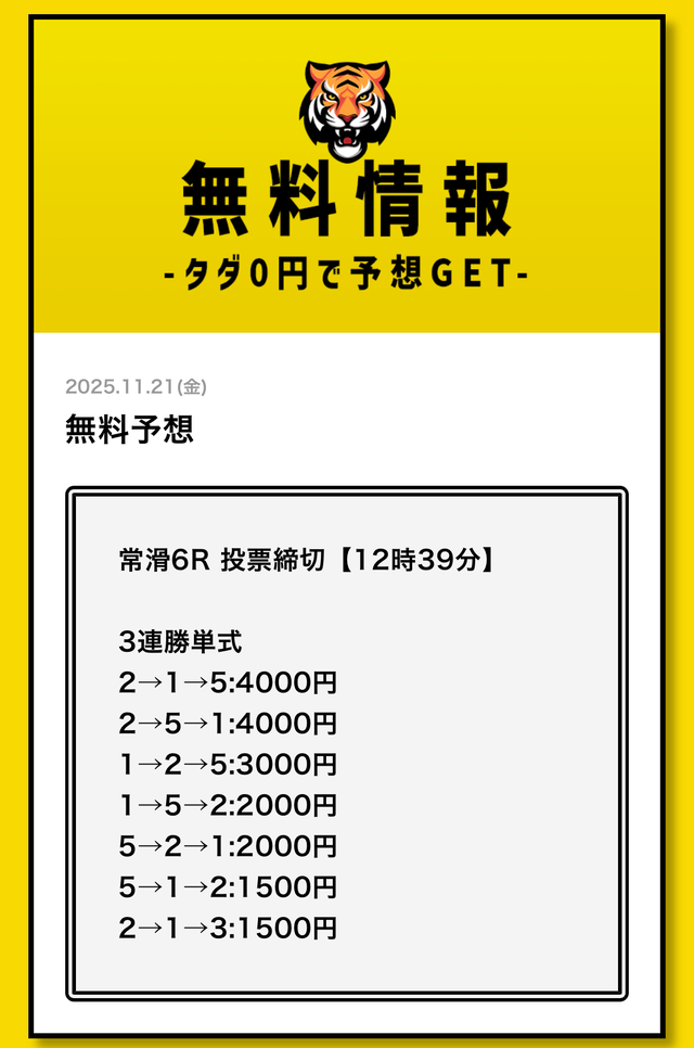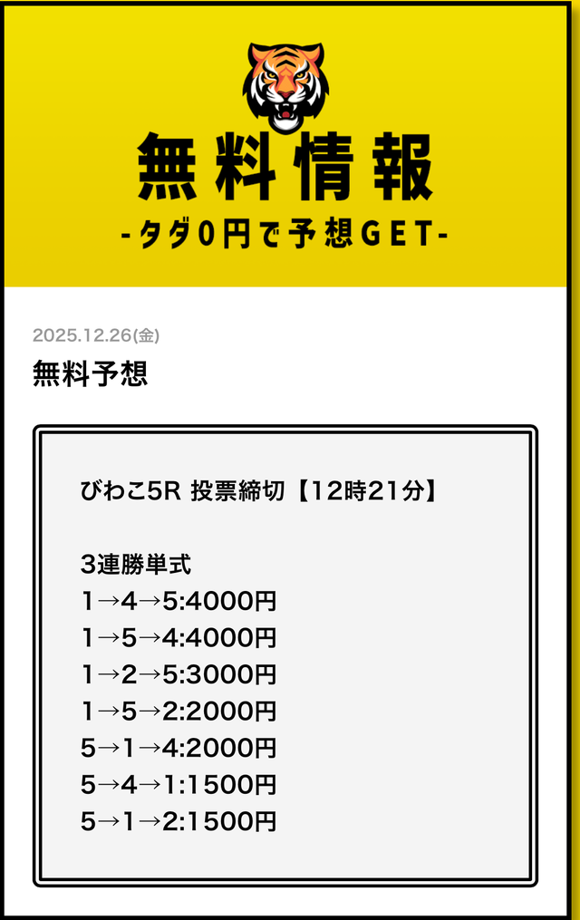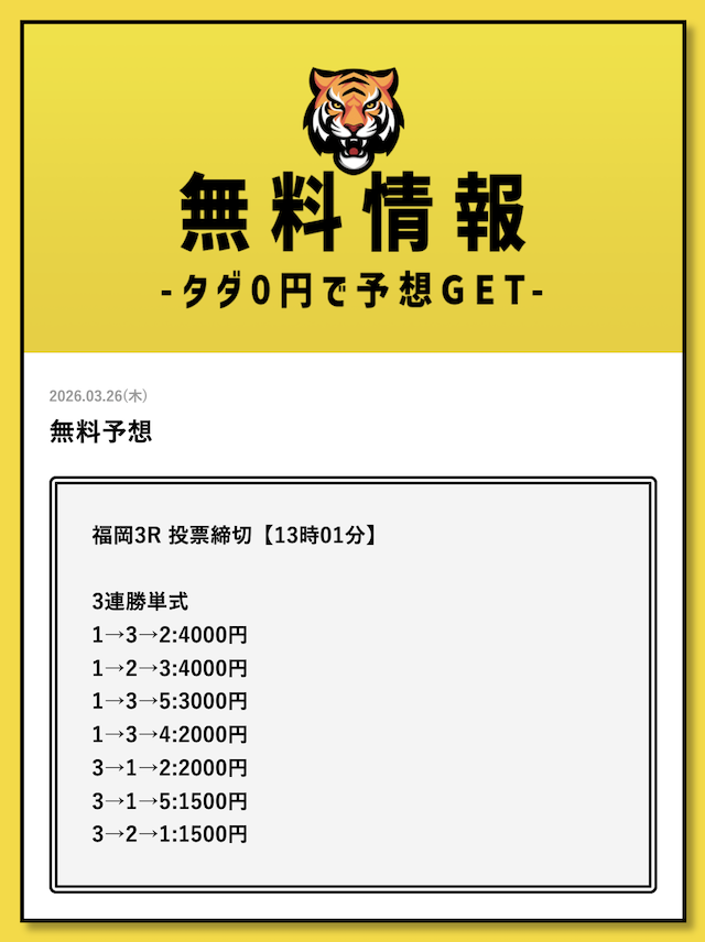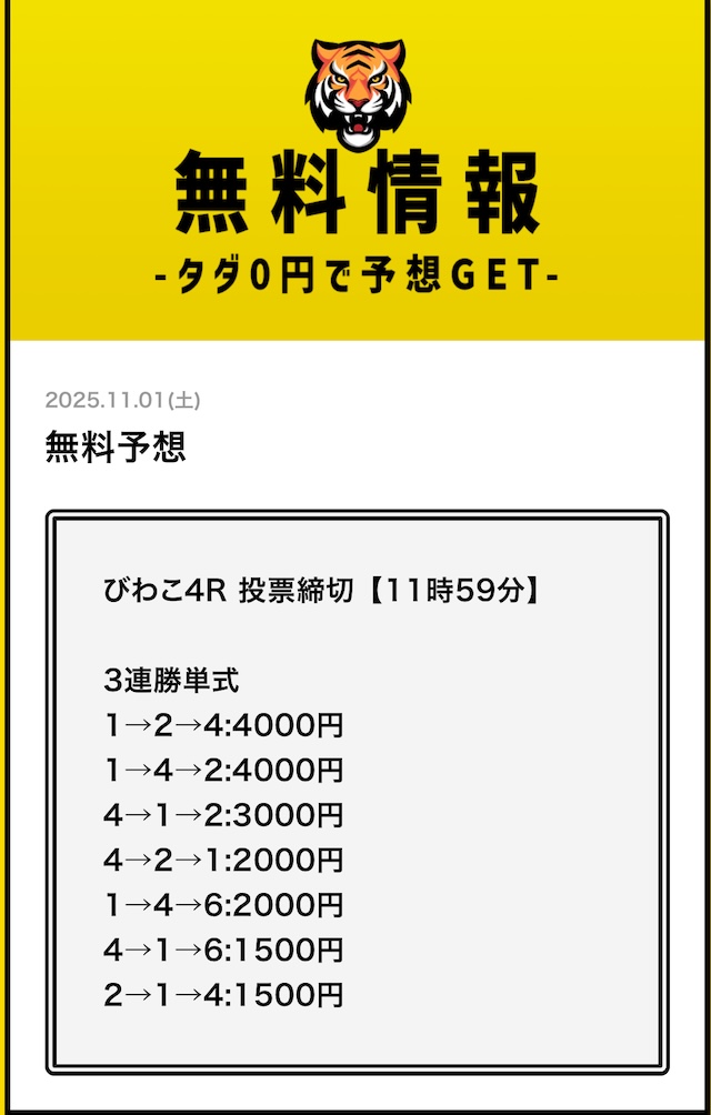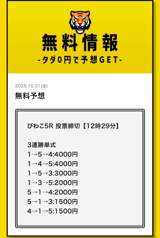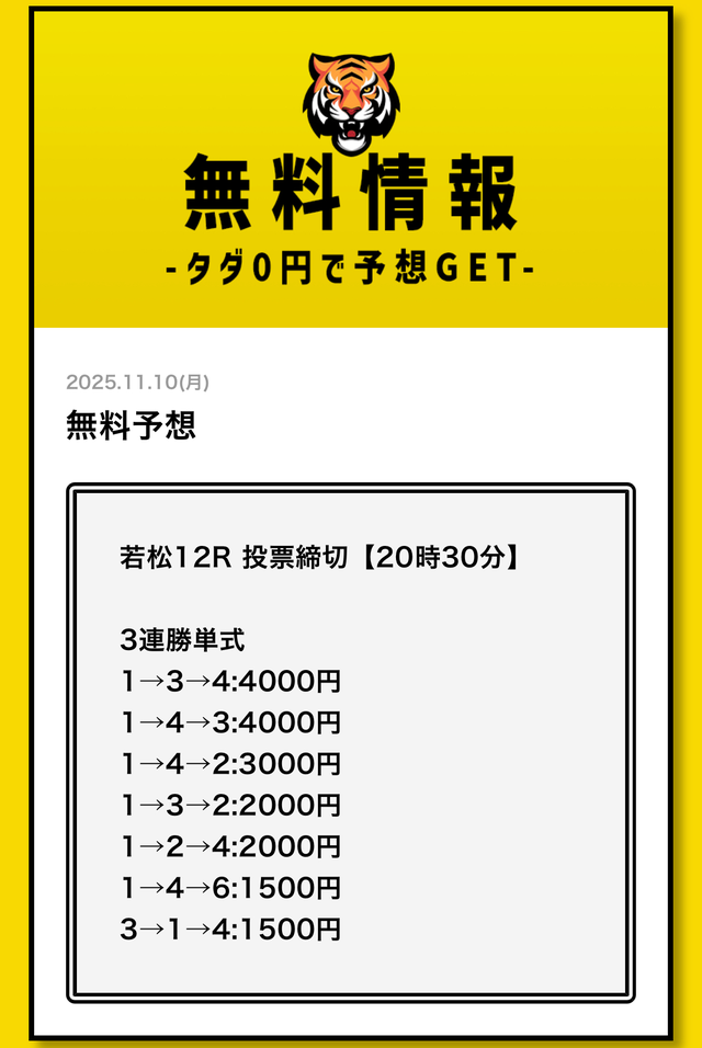 まずは無料予想でタイガーボートの分析力を確認し、その精度に納得してから有料予想に移行してみてください。