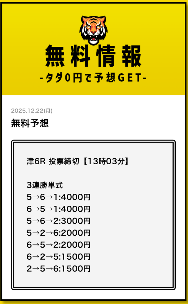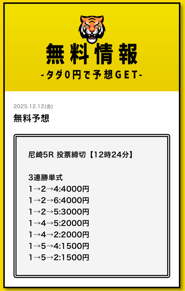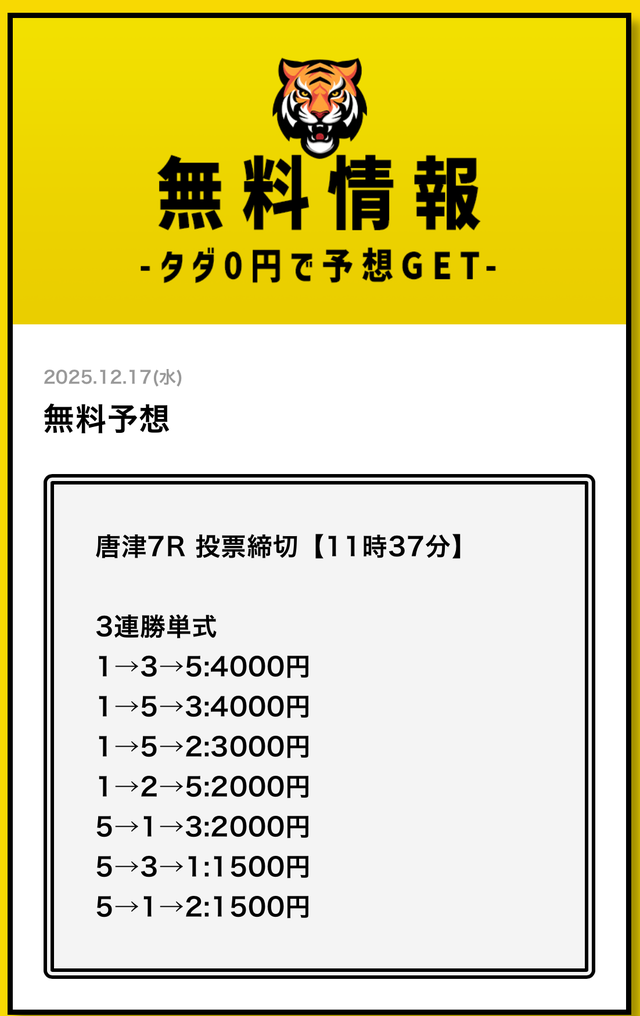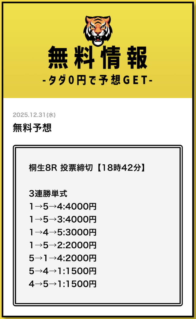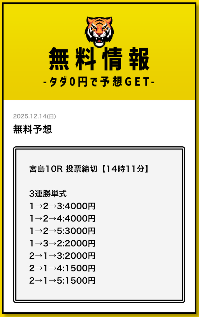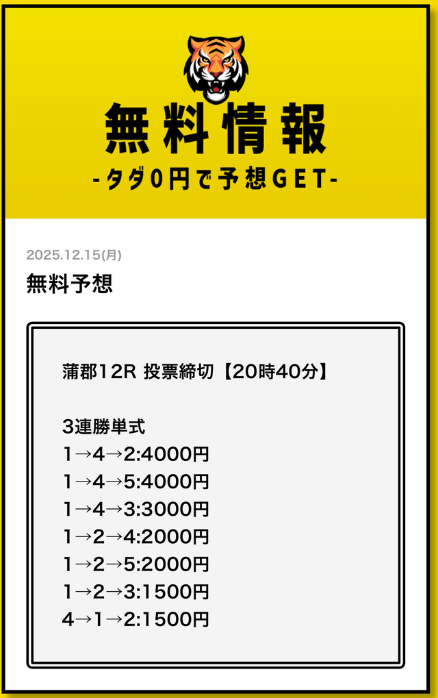 無料予想とは思えない金額です。