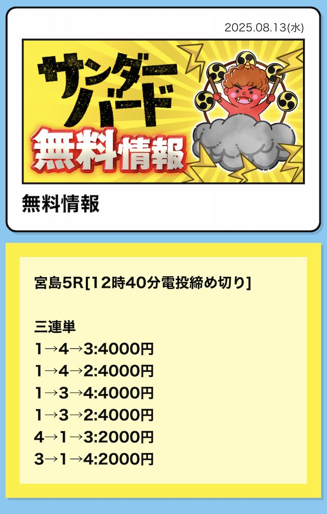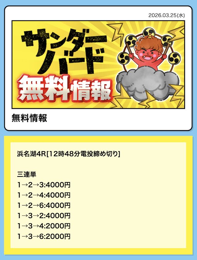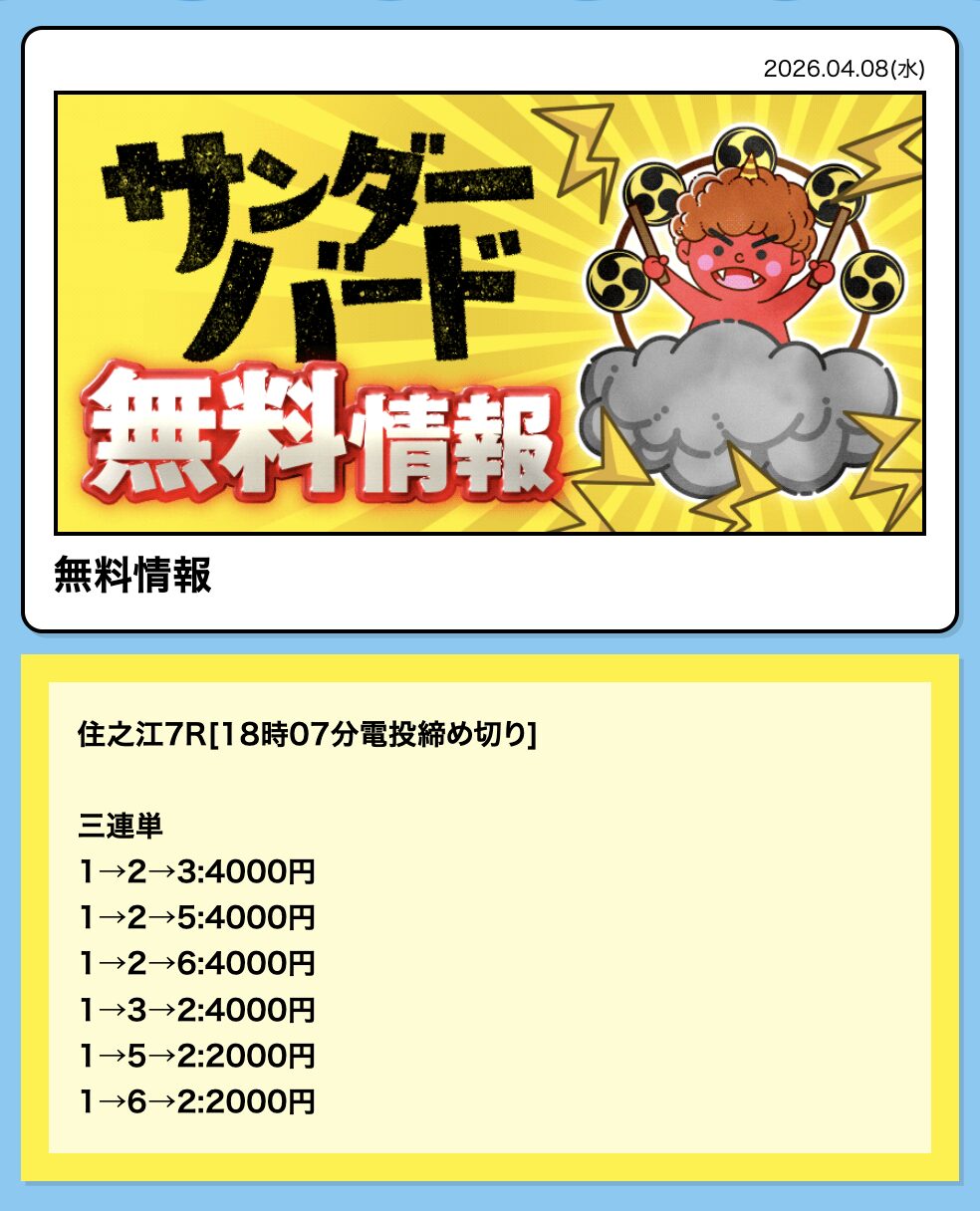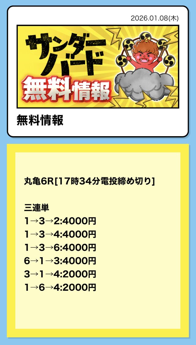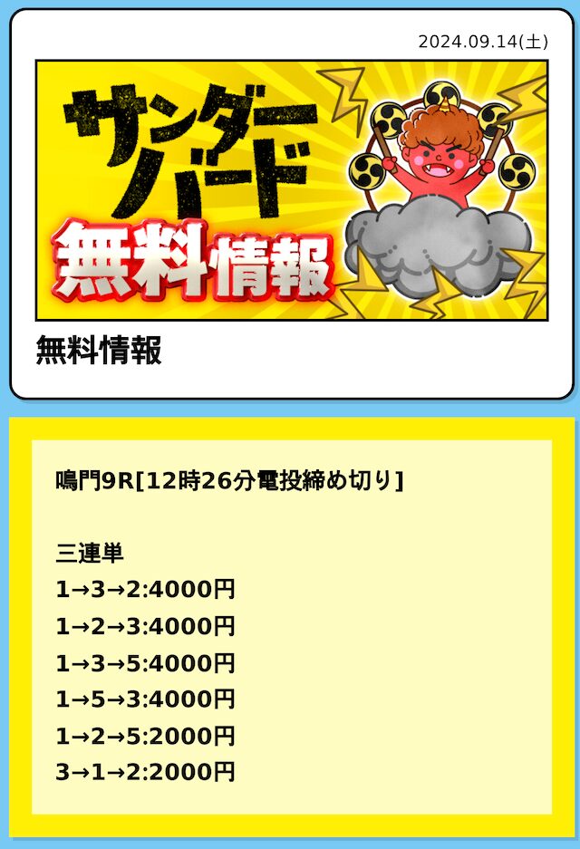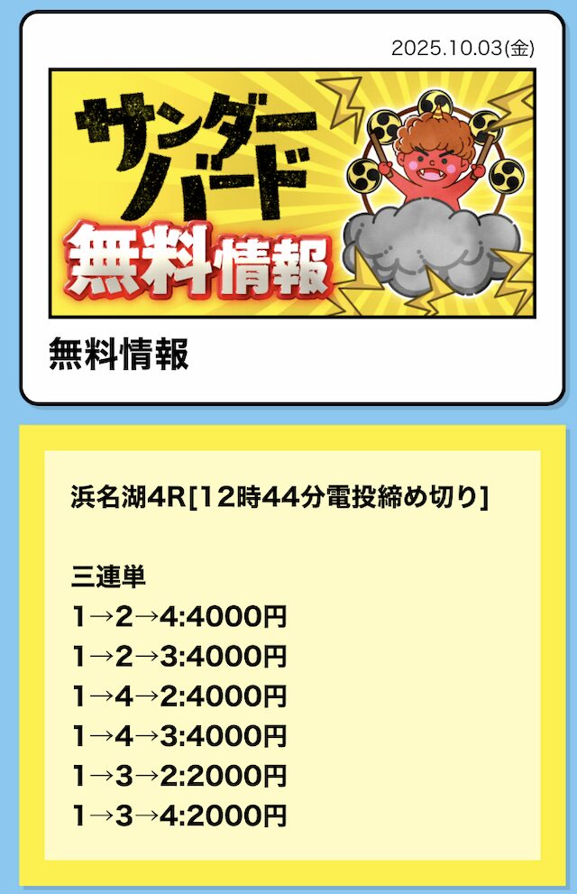 競艇サンダーバードの有料予想「100pt情報」の結果を共有します。