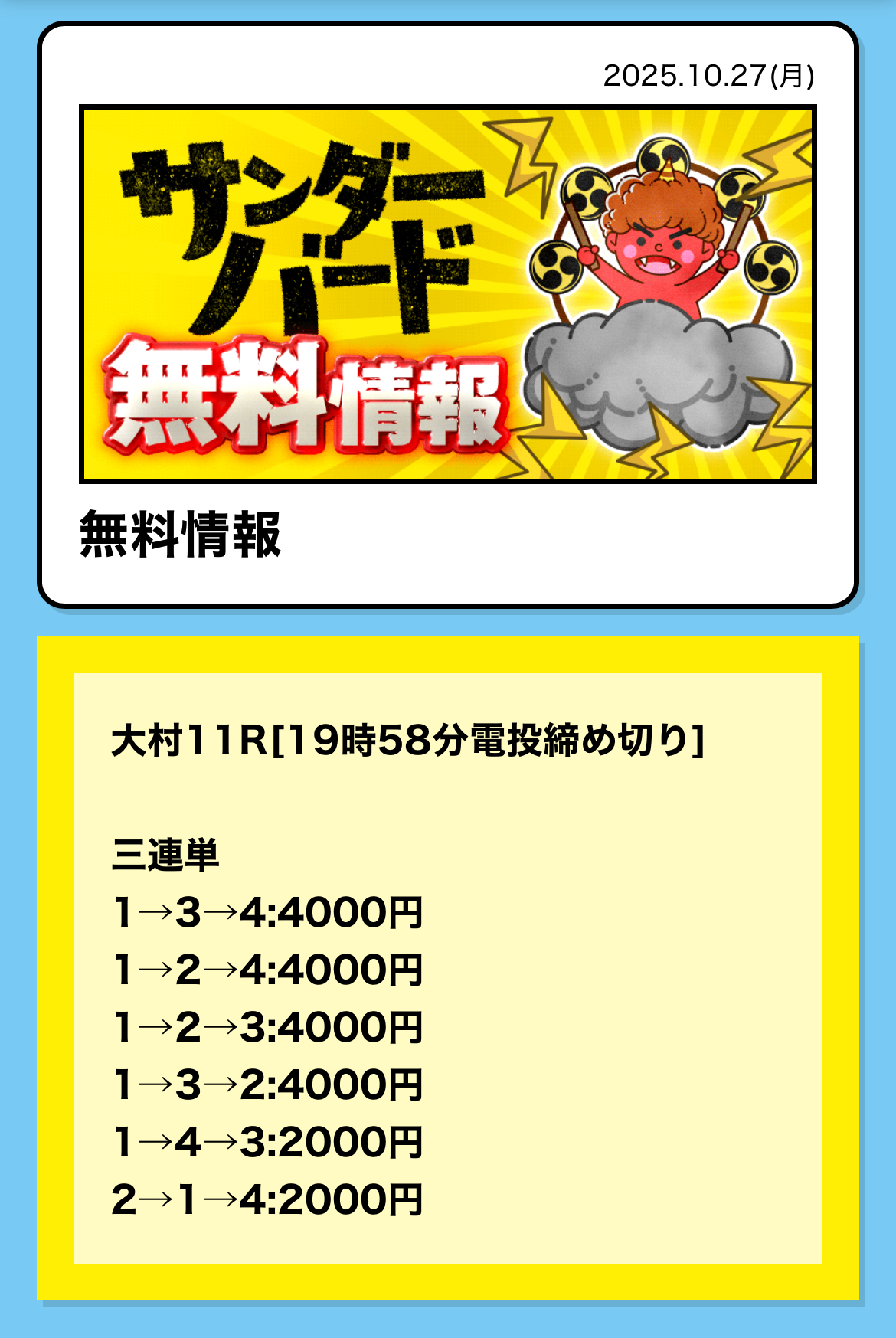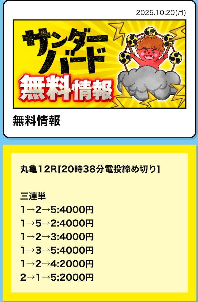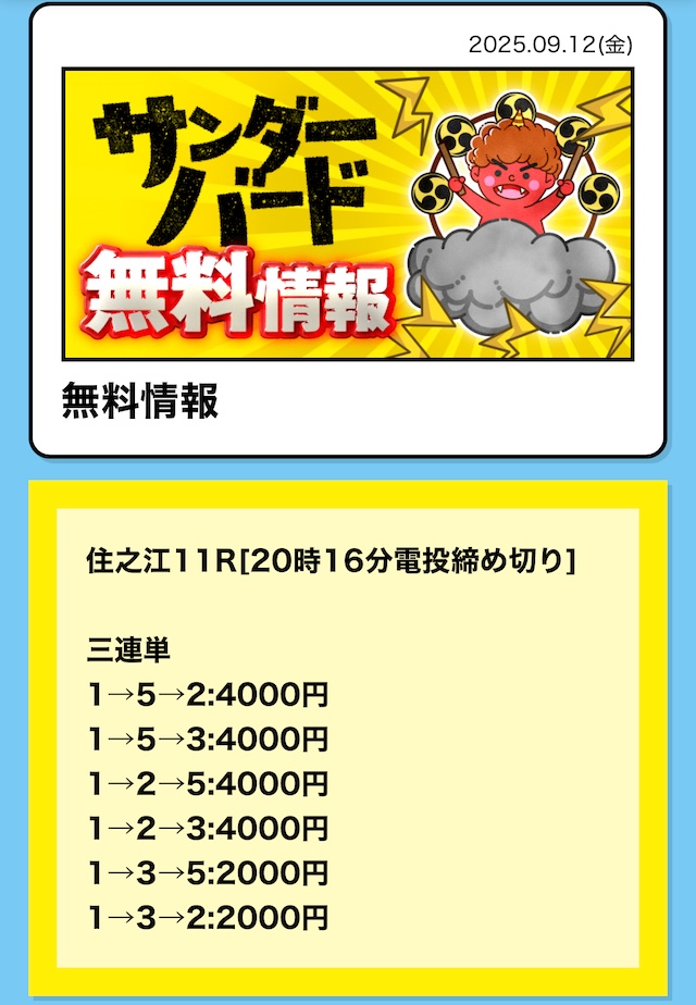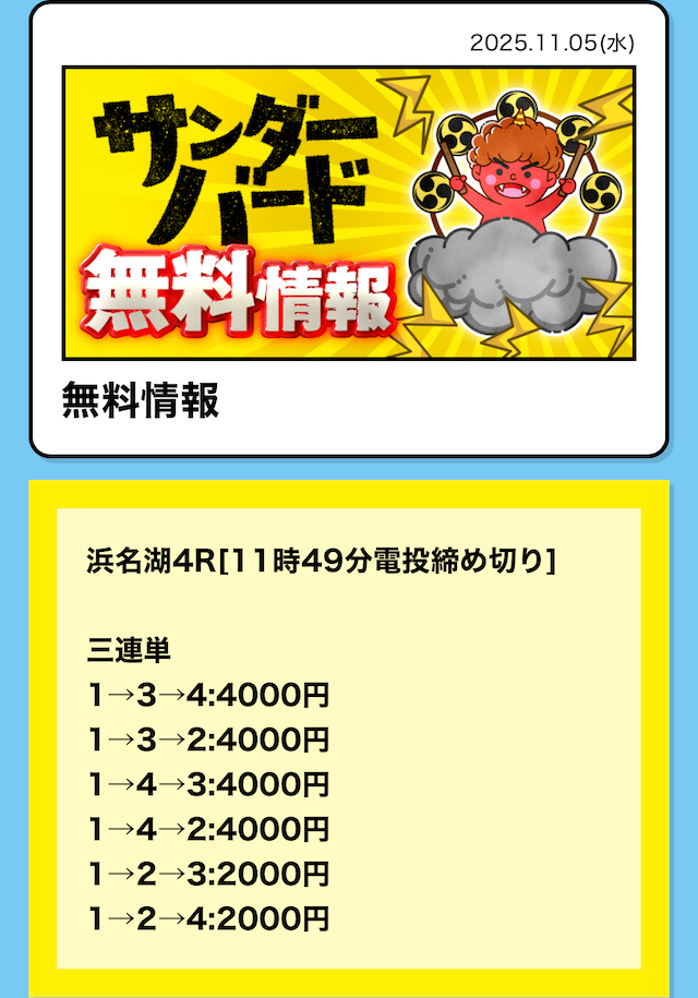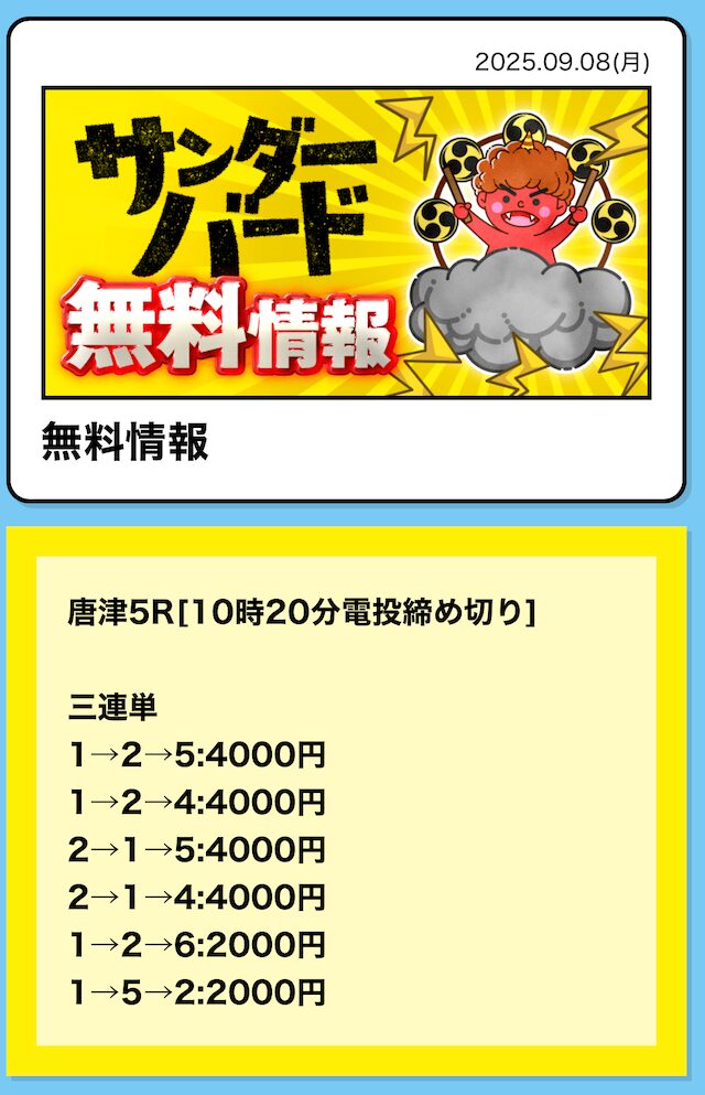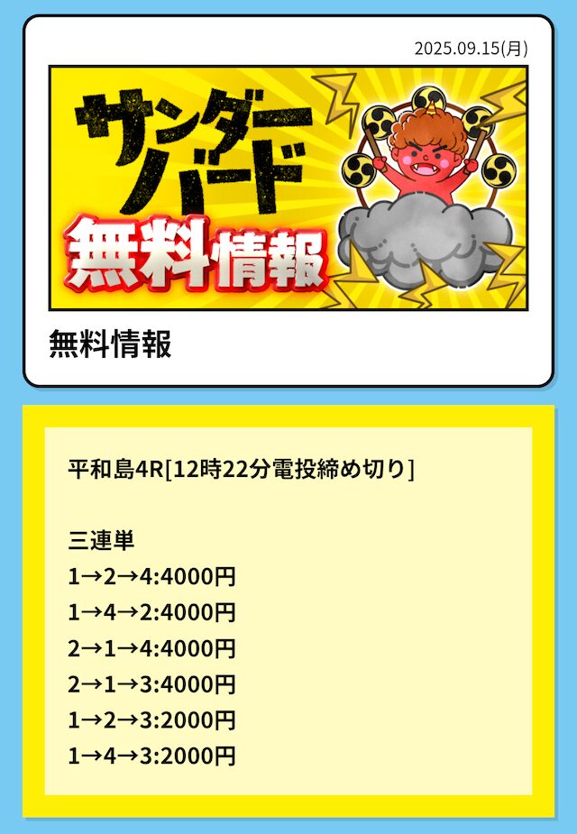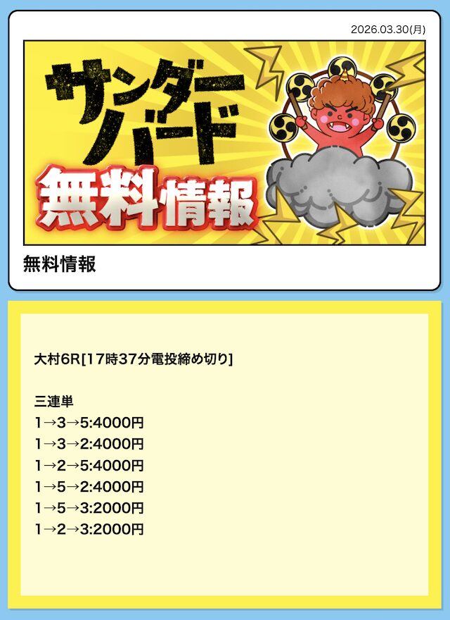 競艇サンダーバードの有料予想「100pt情報」の結果を共有します。