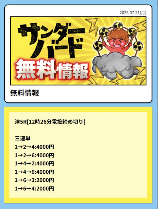 これから競艇で収益を上げたいと考えている方は、まずは競艇サンダーバードの無料予想から試してみてください。