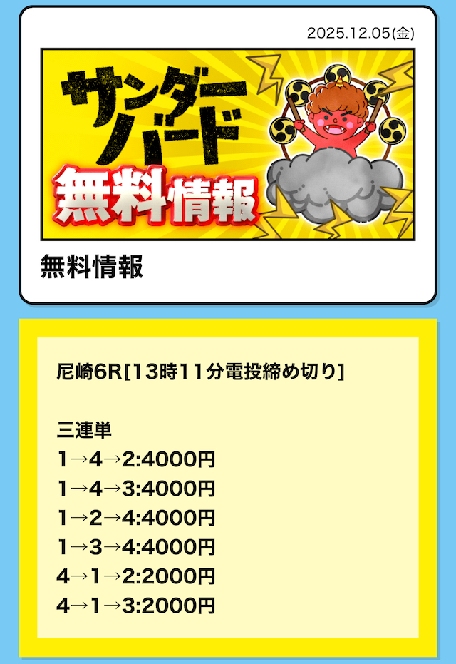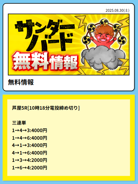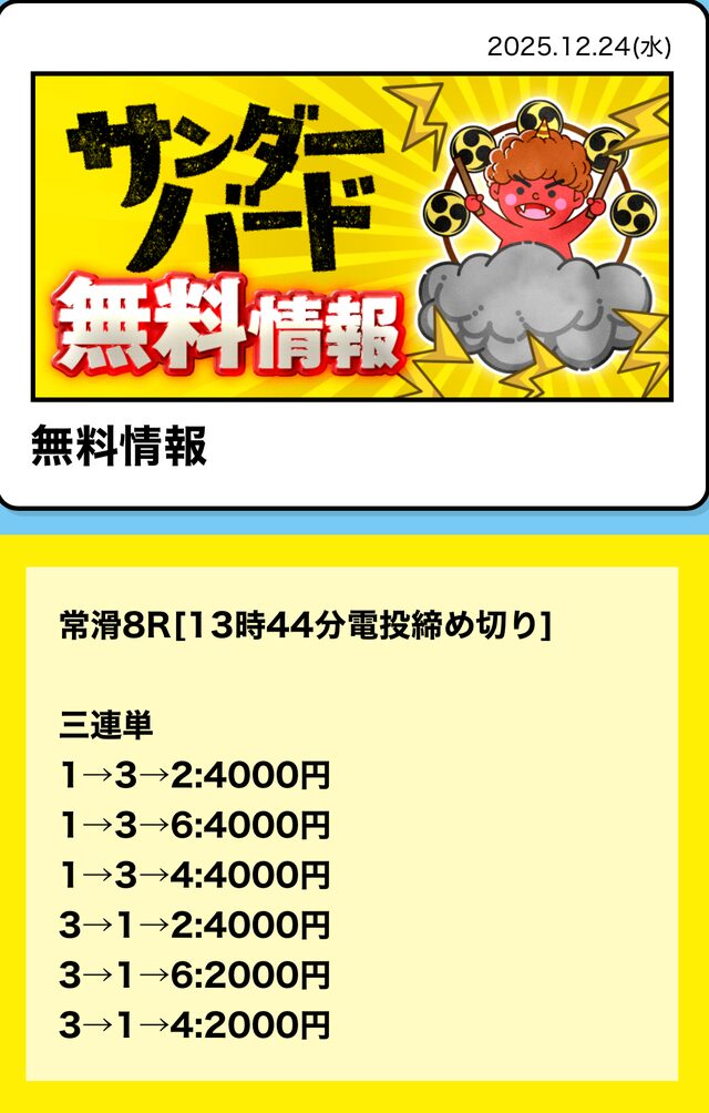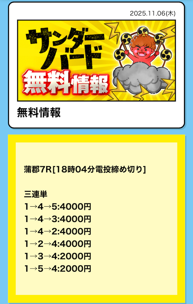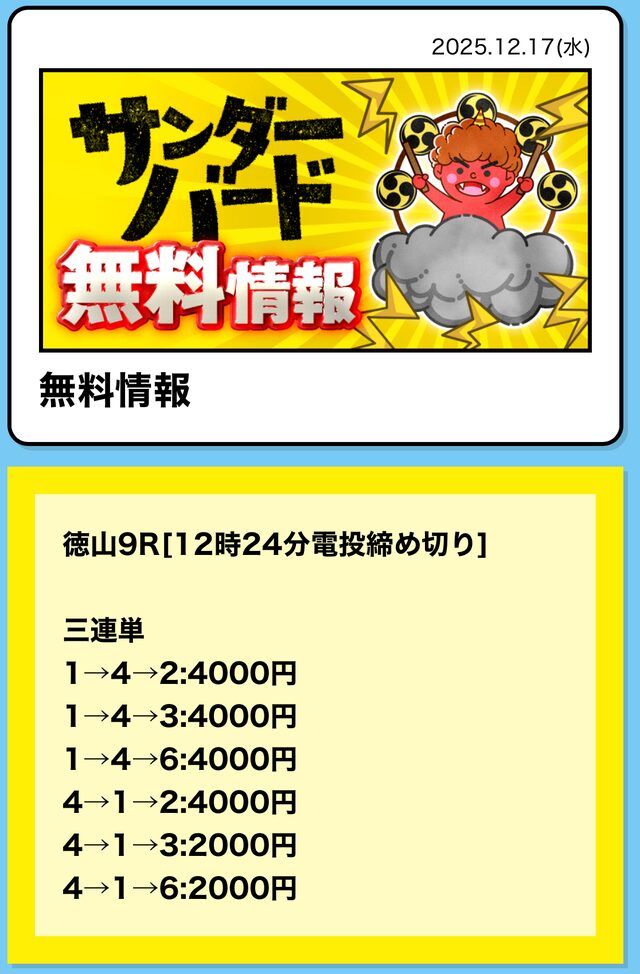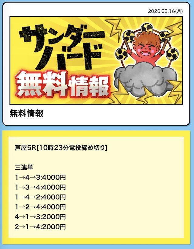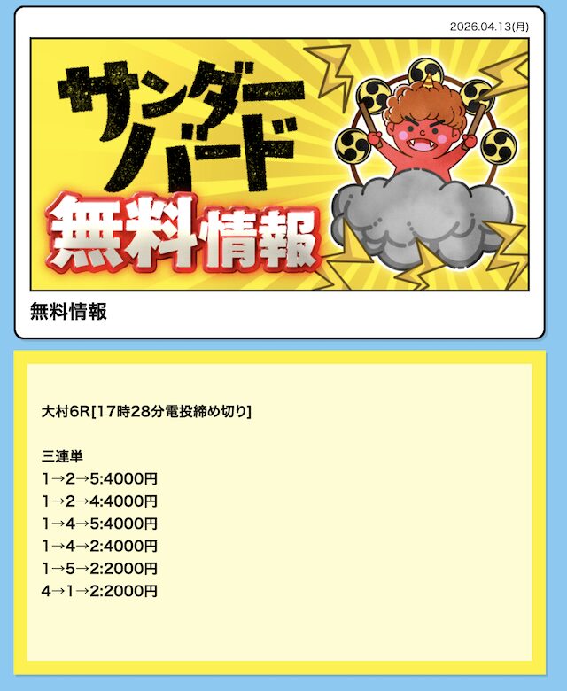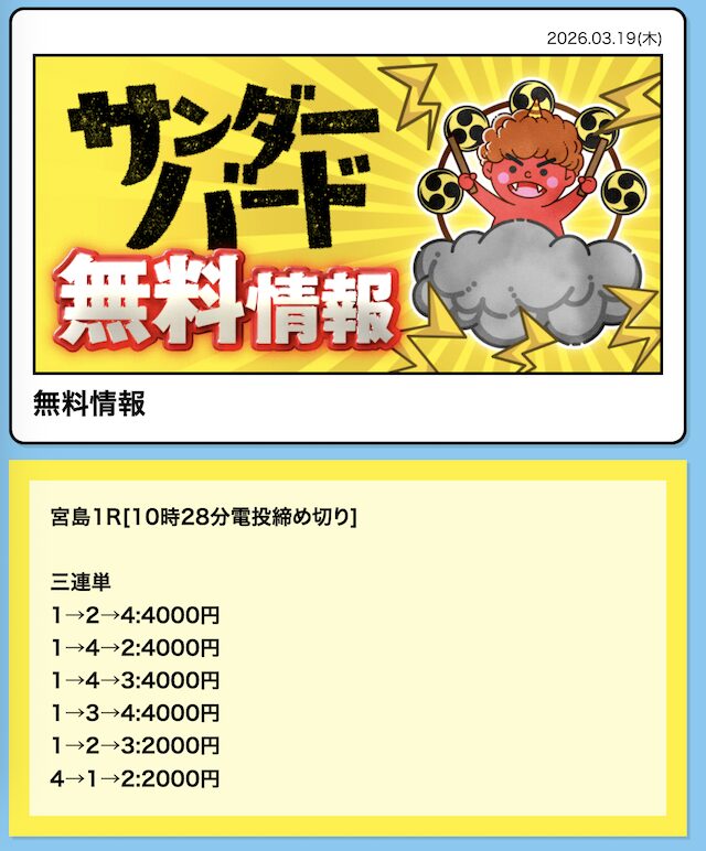 競艇サンダーバードの無料予想の検証結果からご覧ください。