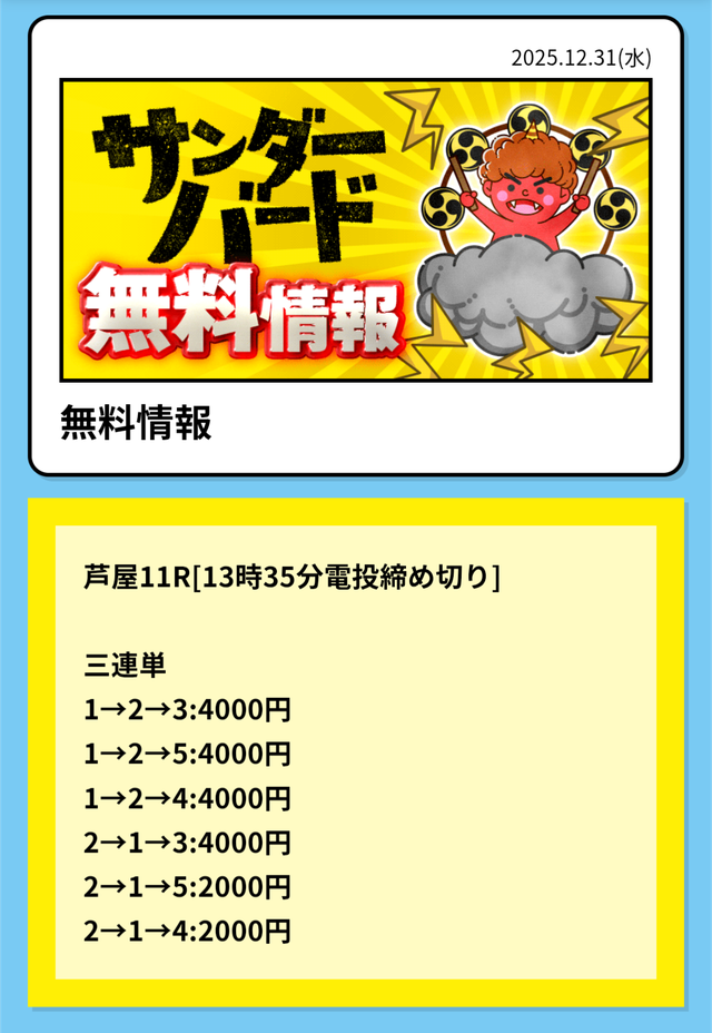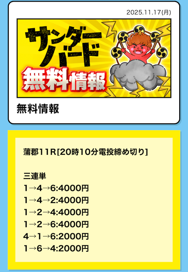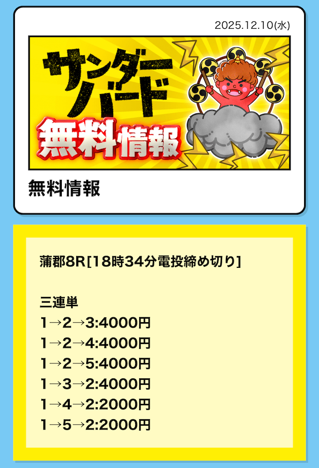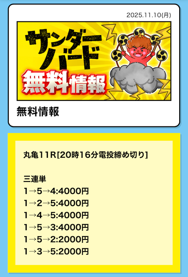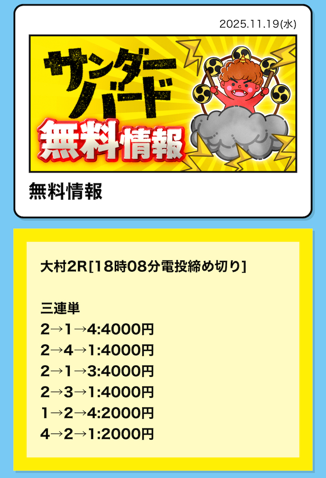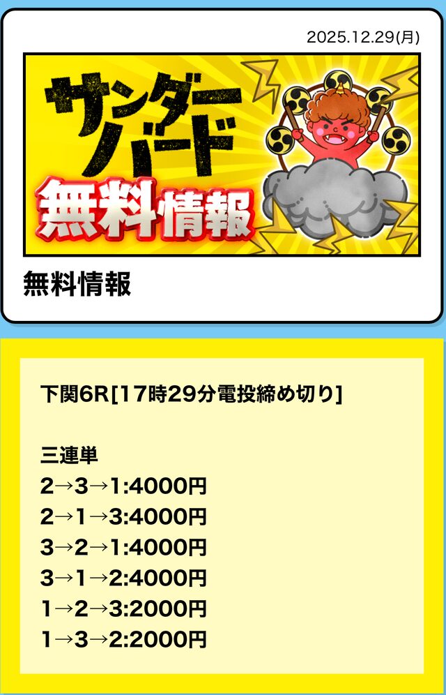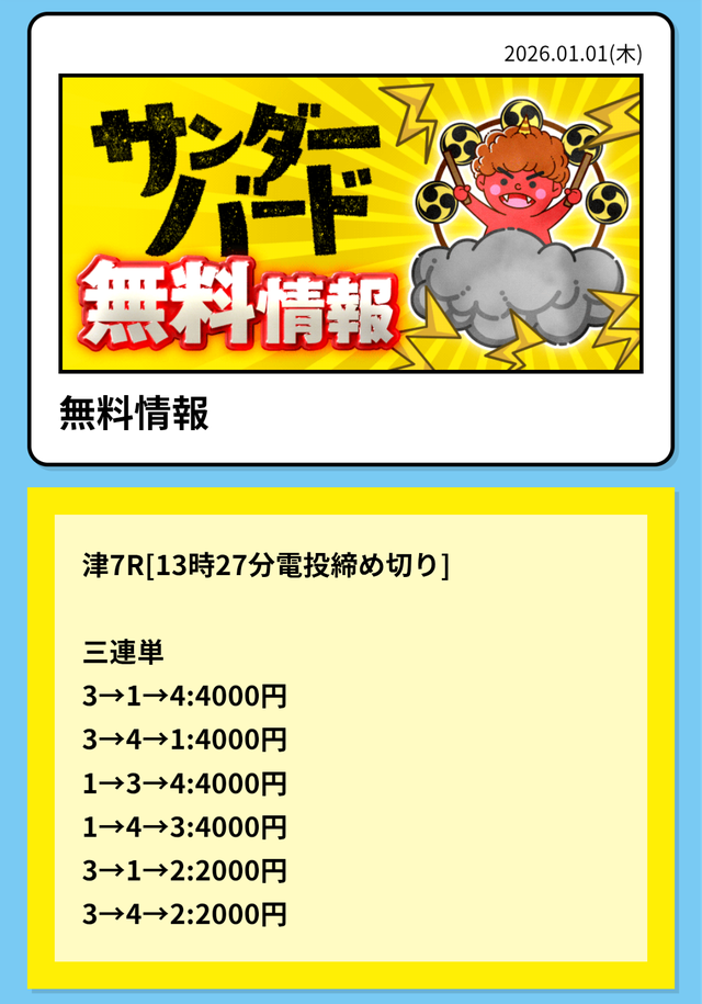 競艇サンダーバードの無料予想の検証結果からご覧ください。