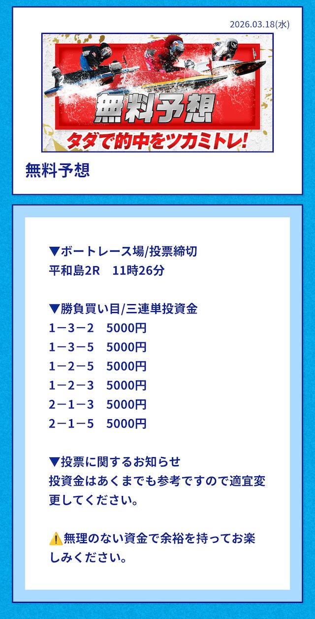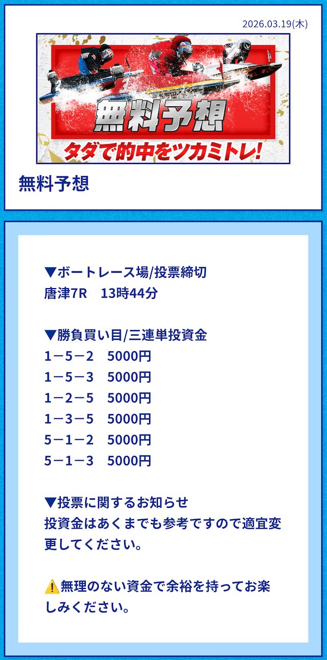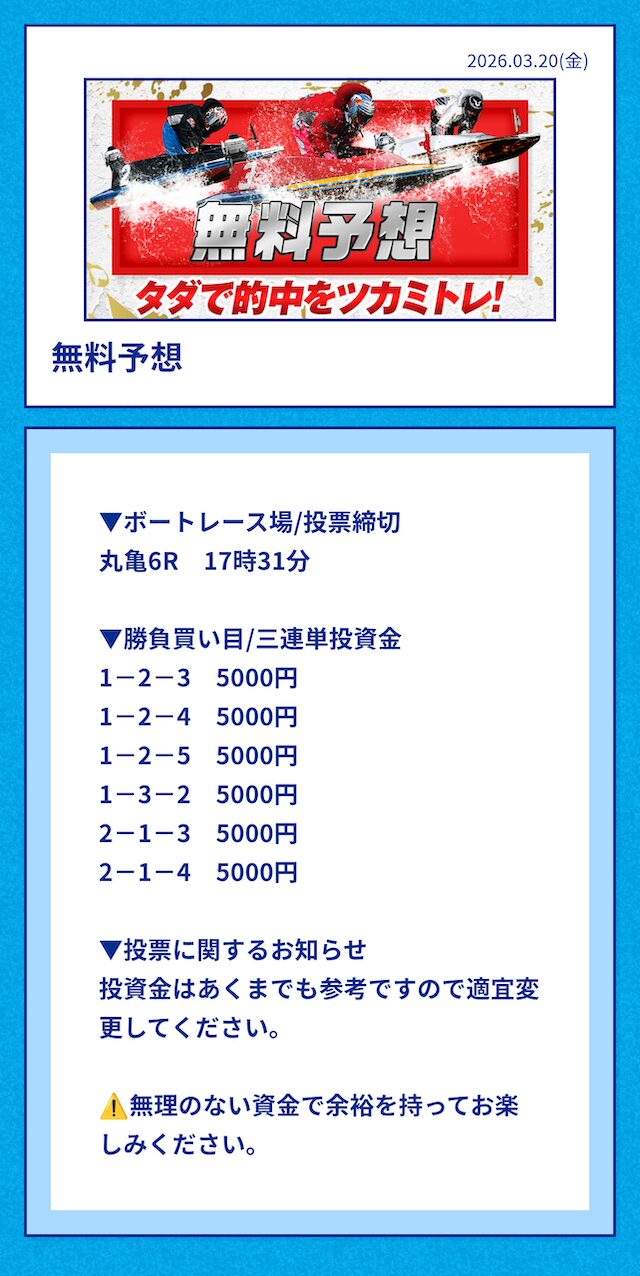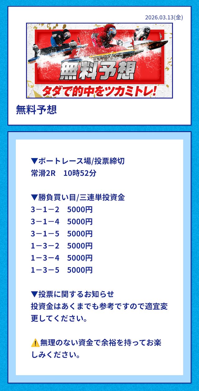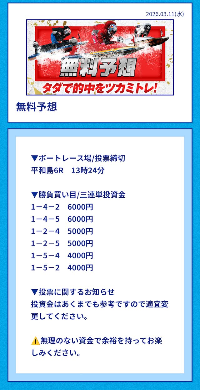 BoatWithでは、2026年3月11日からツカミトレの無料予想の検証を続けています。