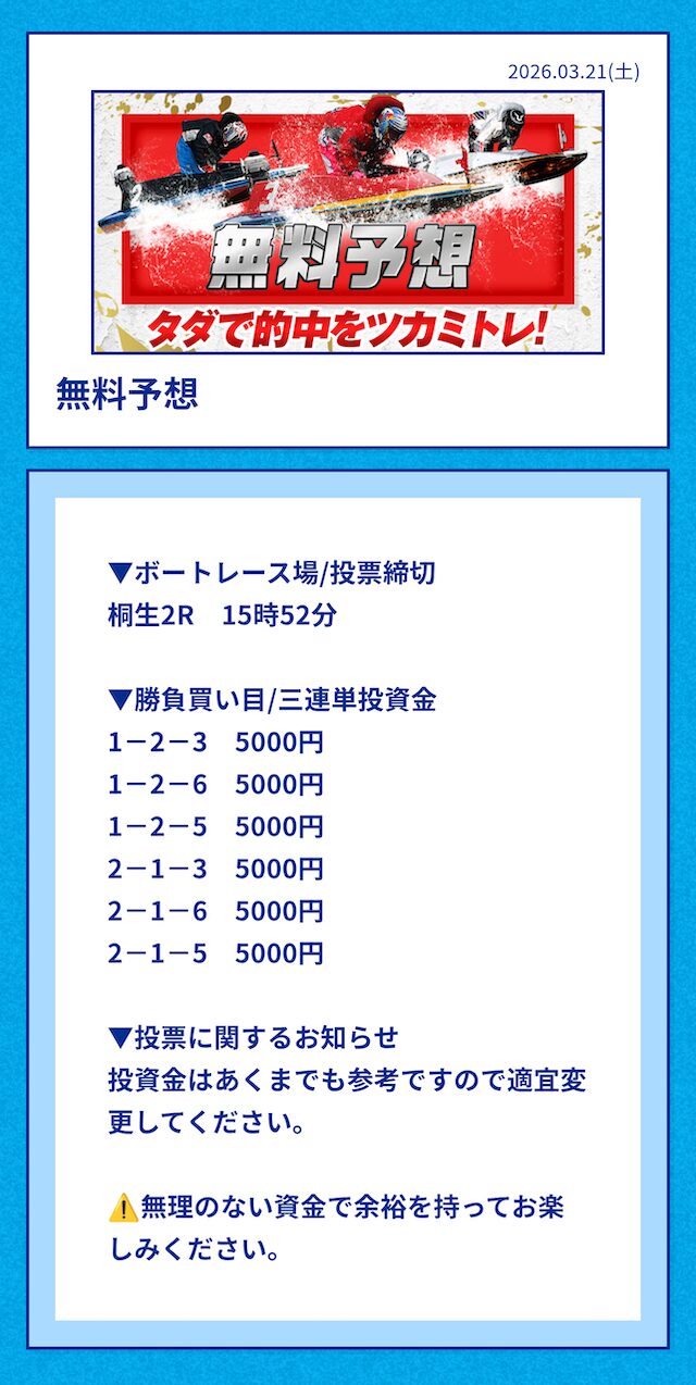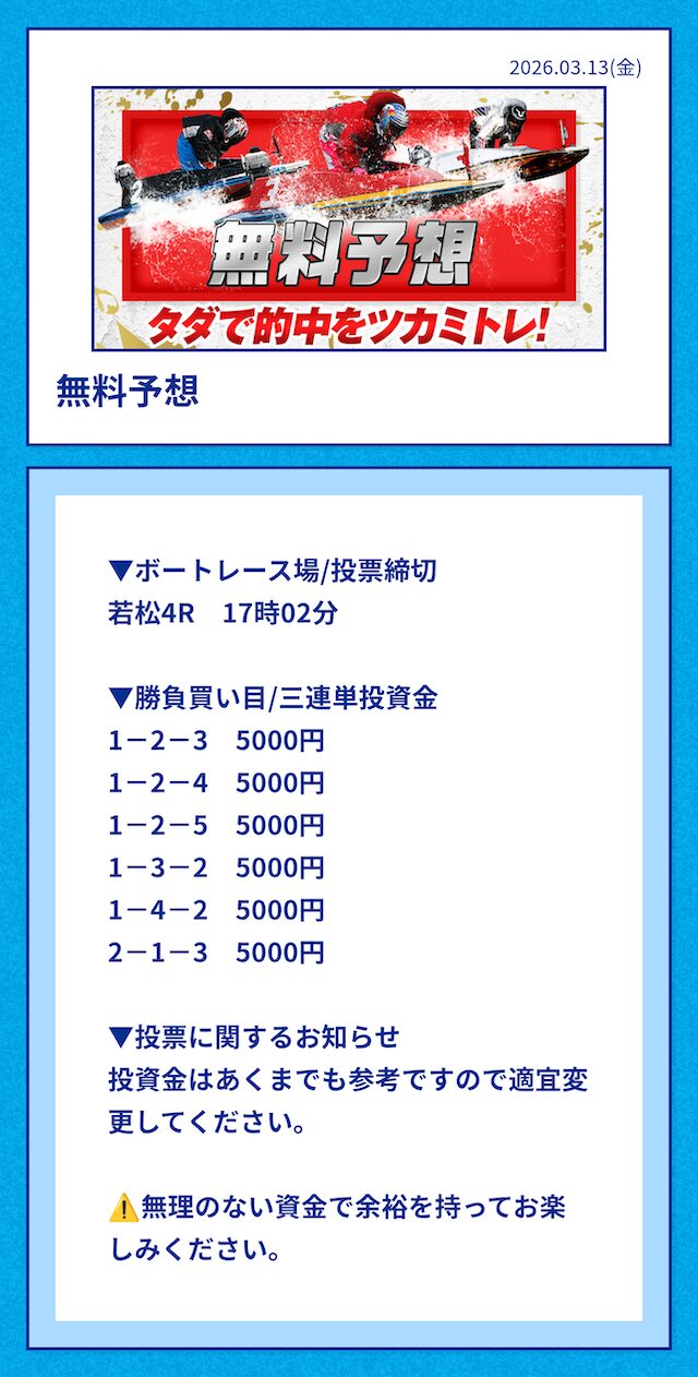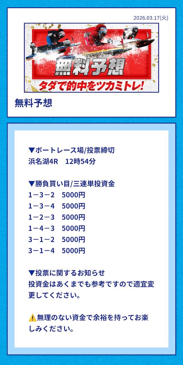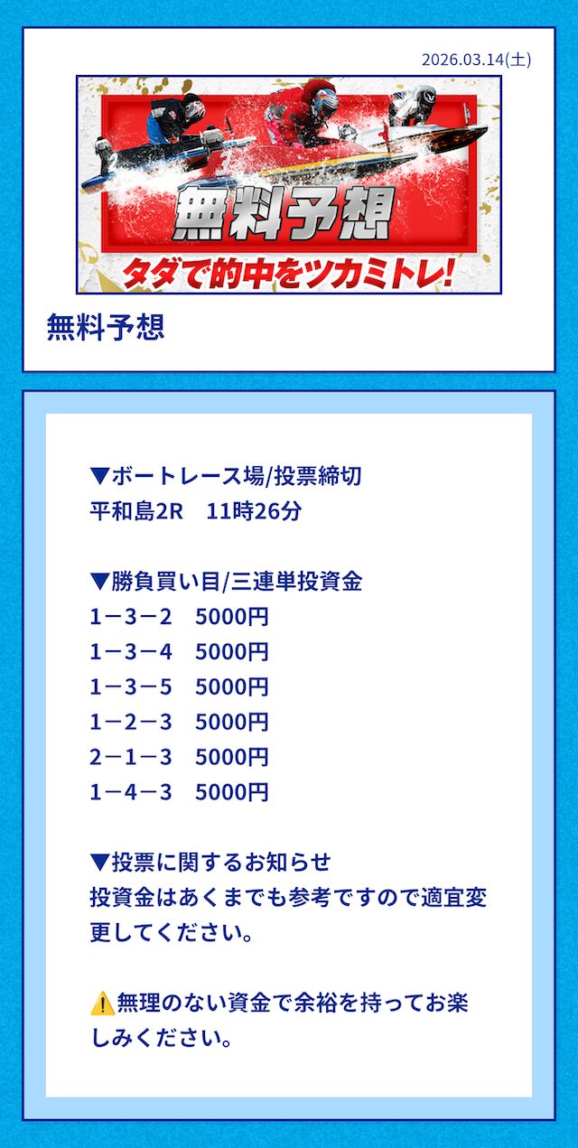 BoatWithでは、2026年3月11日からツカミトレの無料予想の検証を続けています。