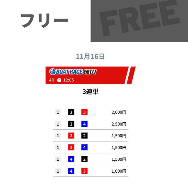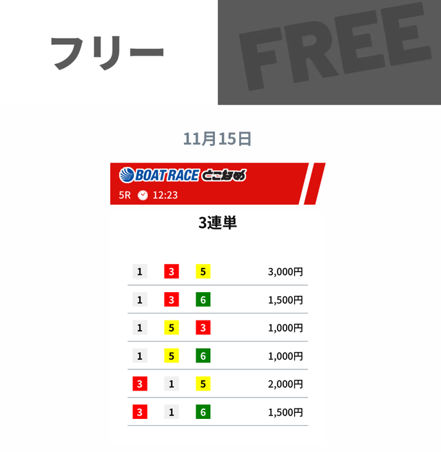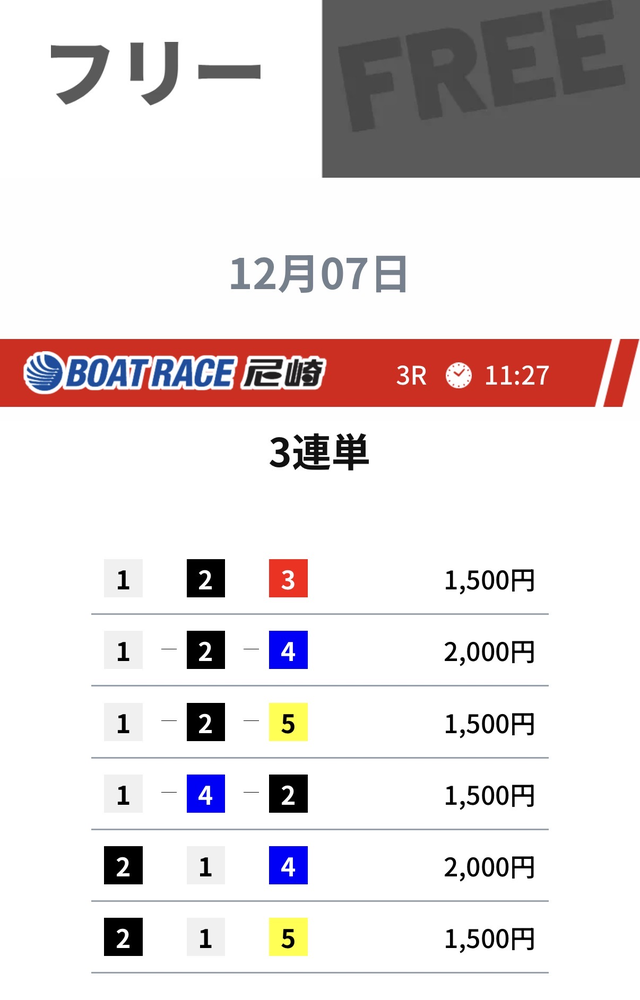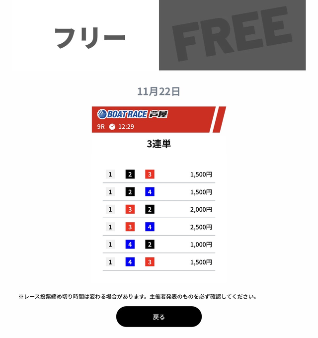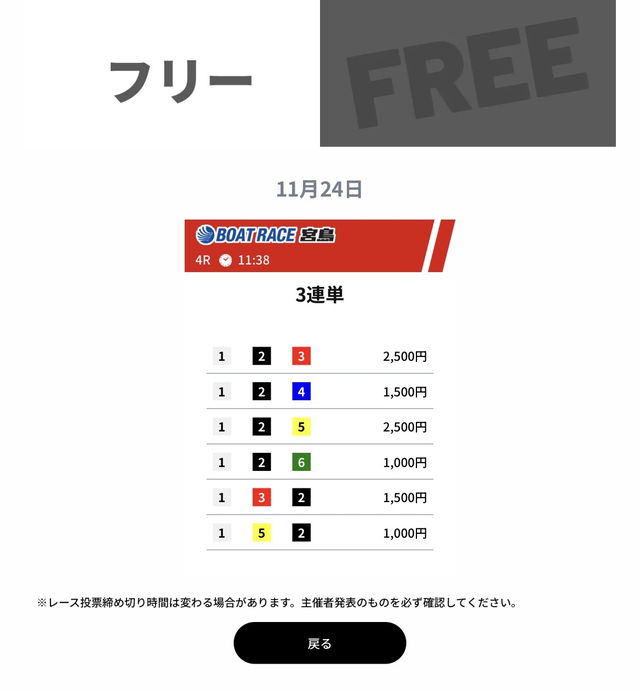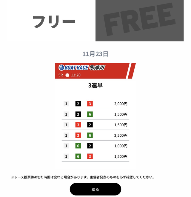 ウルトラボートの成績であれば、無料予想に2回ほど参加するだけで、有料予想を購入できるだけの金額を獲得できます。