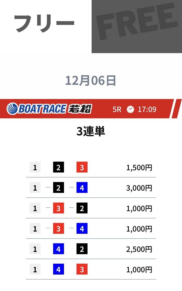 さすがに成功率が4分の1を切ることは無さそうですが、負けたらまた無料予想に戻るだけなのでデメリットはありません。