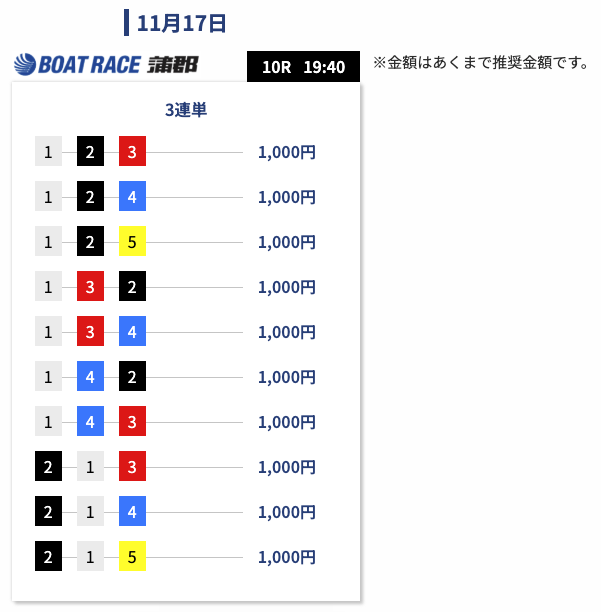 | 平均払戻 | 17,432円 | 36,434円 | 19,625円 | 15,330円 | 25,473円 | 24,300円 | 50,928円 |
