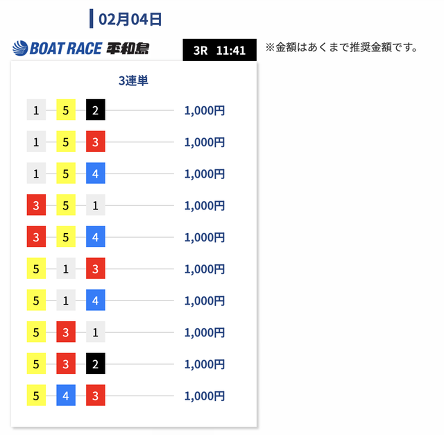 | 2月4日 | 平和島3R | 三連単 | 10点 | 19,800円 |
