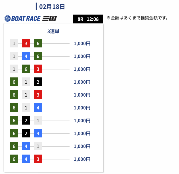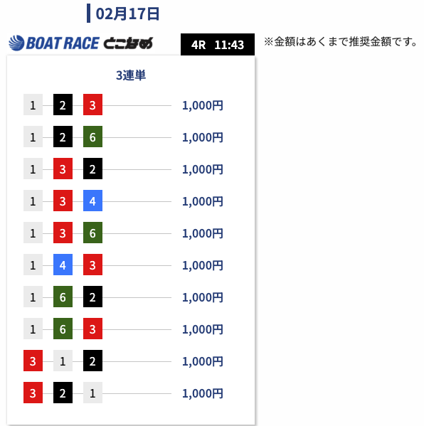 | 8月17日 | 丸亀8R | 三連単 | 6点 | 19,800円 |