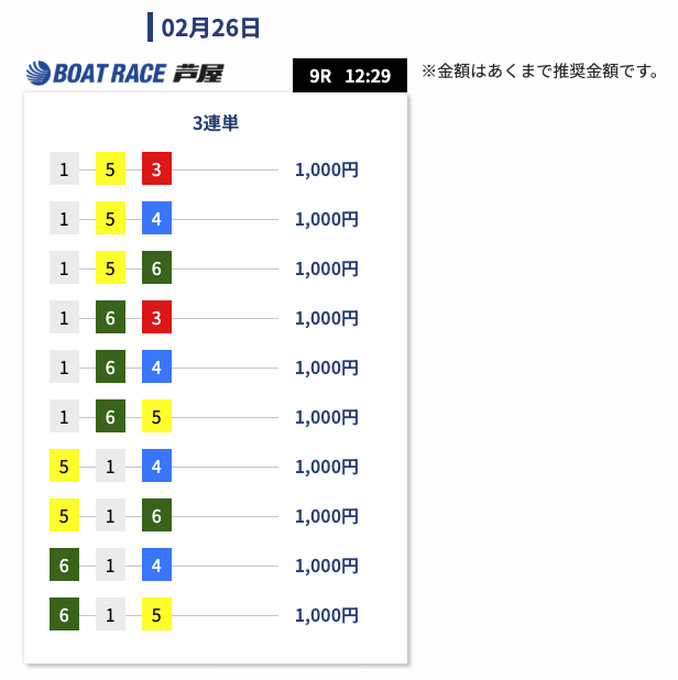 | 12月1日 | 浜名湖6R | 三連単 | 7点 | 16,500円 |