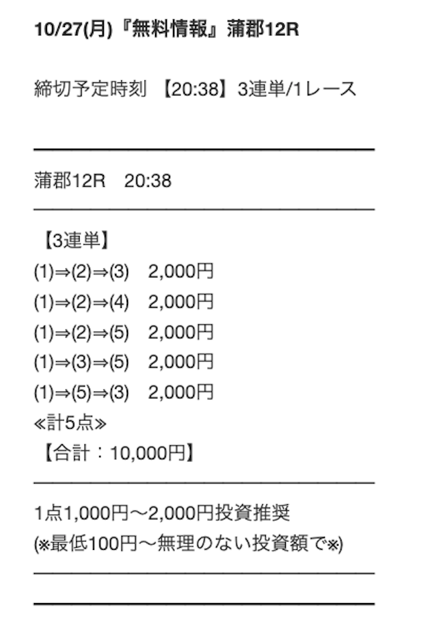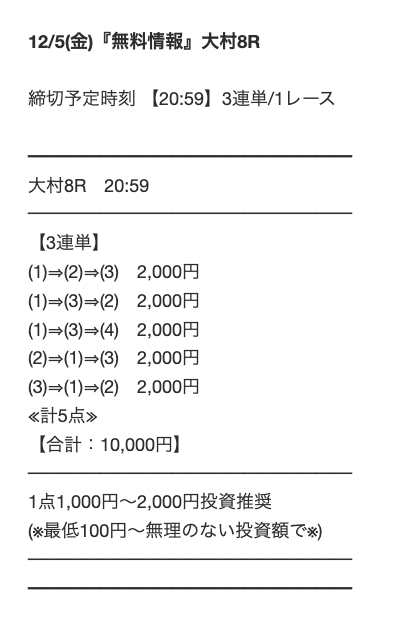 ただし効率的な資金運用を目指すなら、蒲郡・若松・大村での予想配信日を優先するか、桐生では投資額を抑えめにするなどの工夫が効果的でしょう。