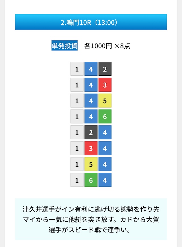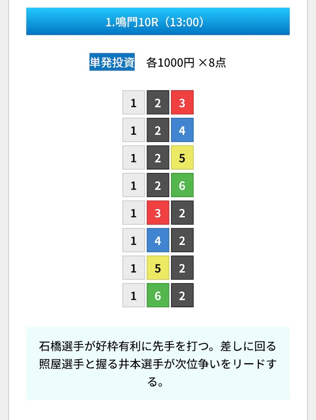 | 8月6日 |  鳴門12R |  三連単 |  8点 |  14,600円  |