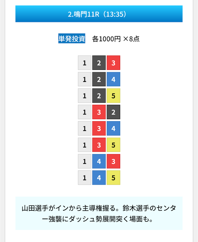 | 9月5日 |  三国11R |  三連単 |  8点 |  16,900円  |