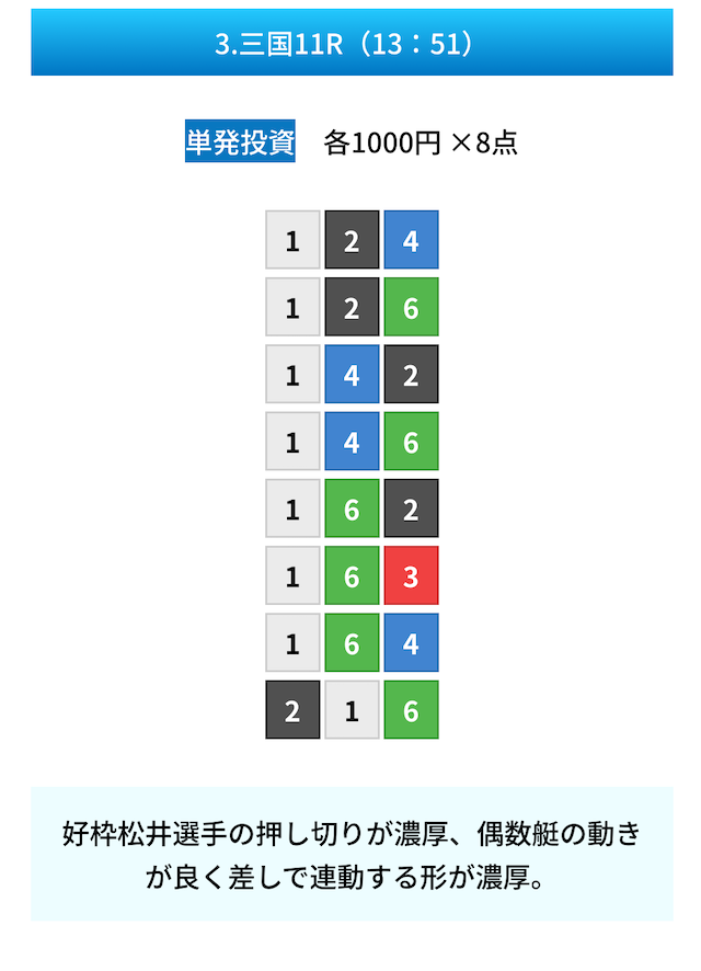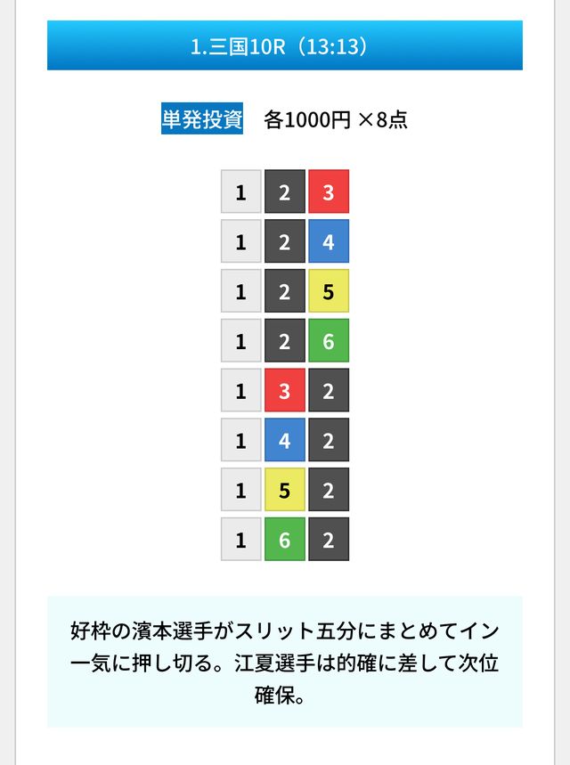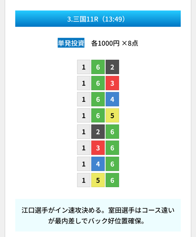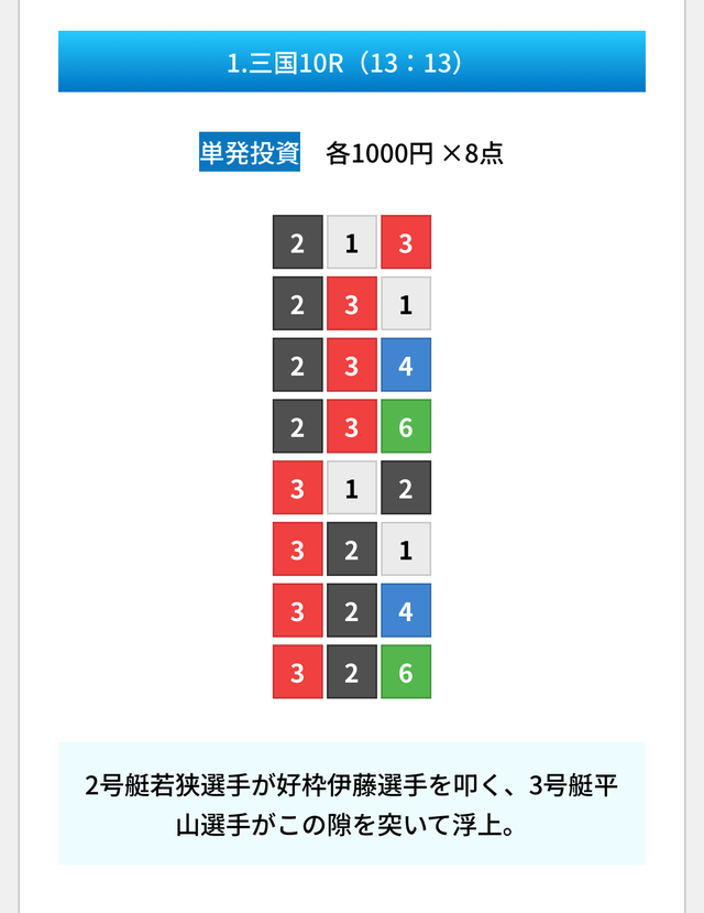 | 11月25日 | 三国10R | 三連単 | 8点 | 13,400円 |