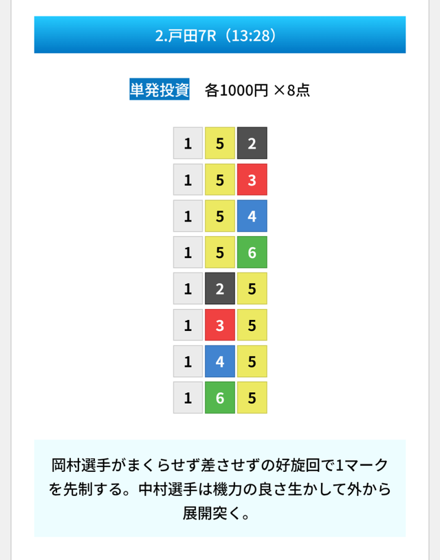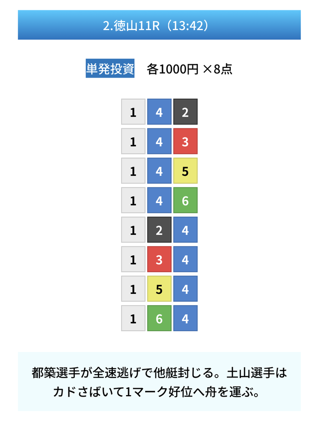 | 11月29日 | 徳山12R | 三連単 | 8点 | 9,500円 |