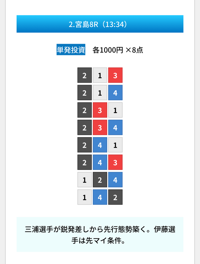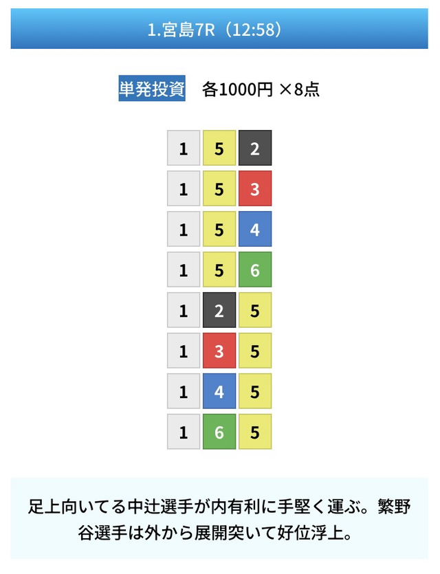 | 12月2日 | 宮島8R | 三連単 | 8点 | 12,700円 |