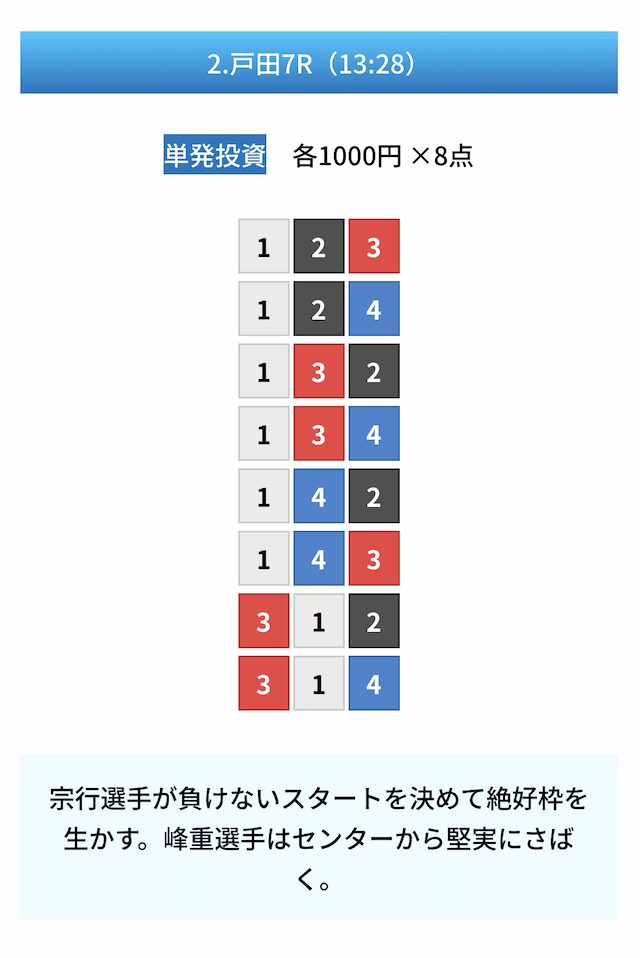 | 11月13日 | 戸田8R | 三連単 | 8点 | 0円 |