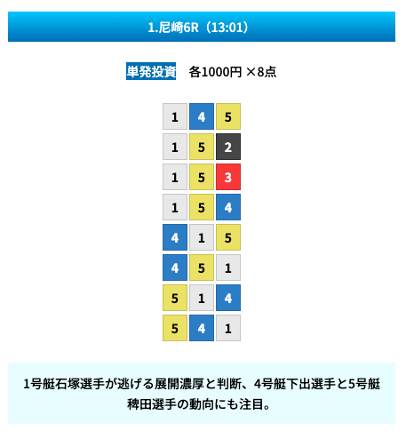 | 2月2日 | 尼崎6R | 三連単 | 8点 | 18,700円 |